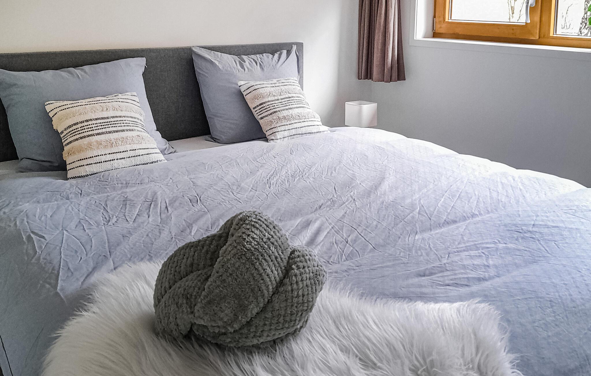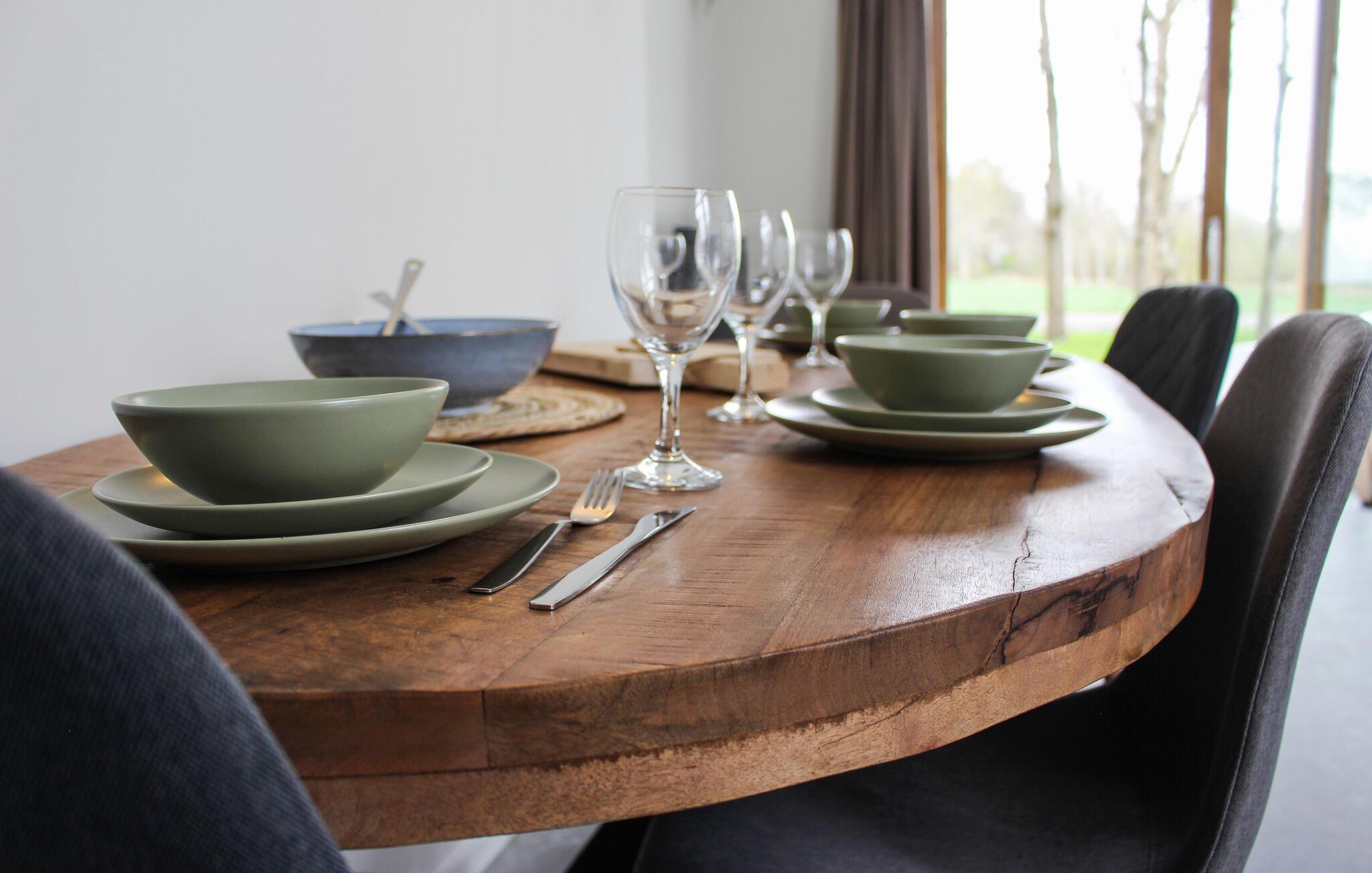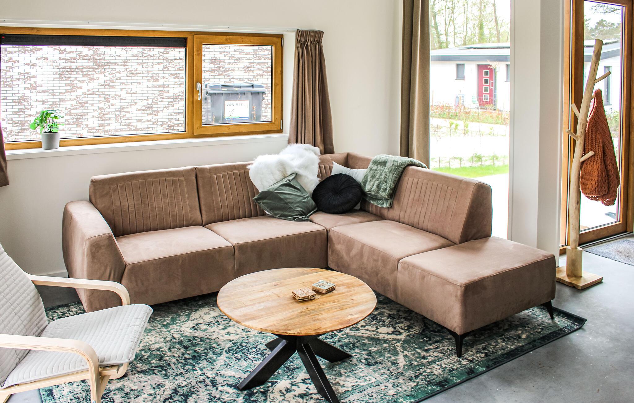Naturmennesker vil føle sig hjemme fra dag ét i dette feriehus, som ligger i en idyllisk beliggenhed. De lyse værelser fortryller med moderne indretning og gulv til loft panoramavinduer, hvorigennem man kan nyde en vidunderlig udsigt over landskabet i opholdsrummet. Find jer godt til rette her med familien i en stilfuld atmosfære. Opholdsområdet bliver hurtigt centrum for fælles aktiviteter. I kan se frem til måltider ved det lange spisebord og hyggelige aftener i godt selskab.