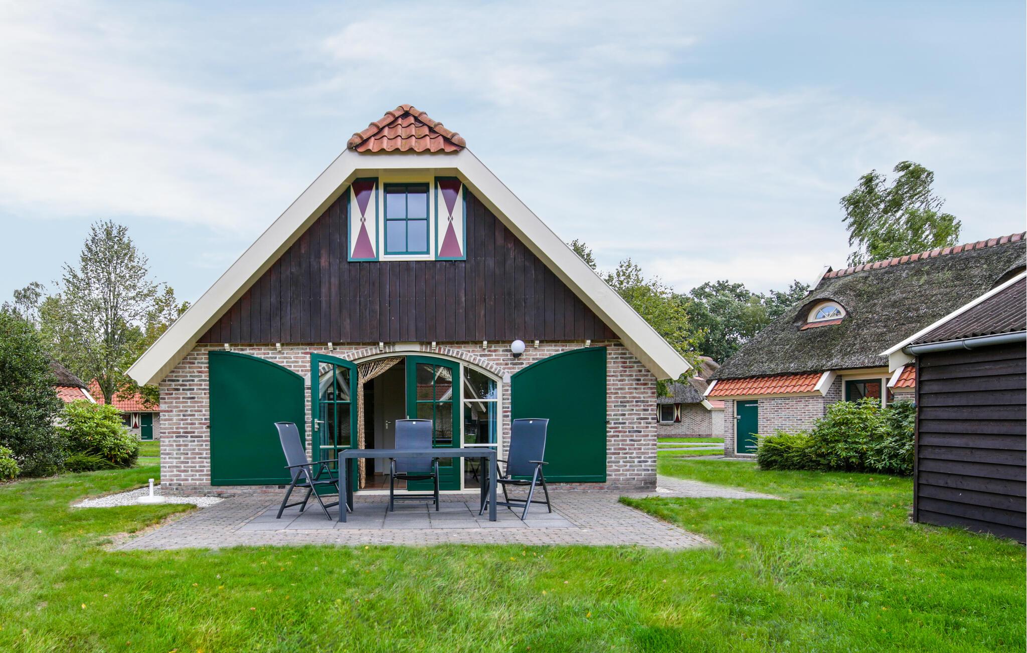 Dette skønne stråtækte feriehus i IJhorst er en del af en stor feriepark, som ligger mellem Meppel og Hoogeveen. Her kan I opleve det åbne rum i provinsen Overijssel med storke i haven og den autentiske atmosfære i provinsen Drenthe.