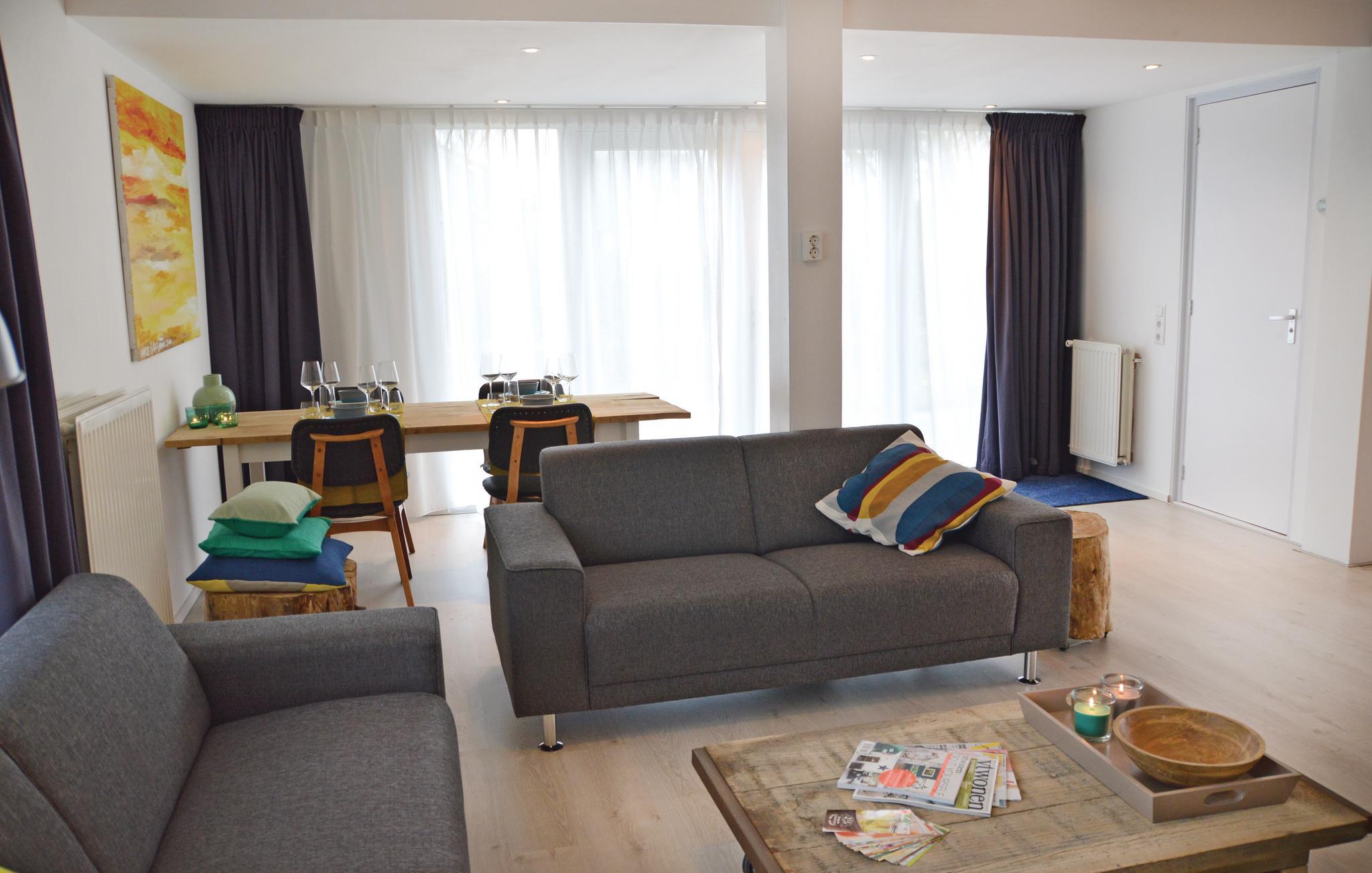 Dette indbydende feriehus i Julianadorp er ideel til en ferie i nærheden af havet. Huset er komfortabelt og hyggeligt indrettet. Via de store døre i opholdsstuen kommer I ud på den dejlige terrasse, hvor I kan nyde lækre feriemåltider under åben himmel. Feriehuset ligger i en pæn og velholdt feriepark, hvor der findes en sø og en lille sportsplads. Stranden ligger naturligvis lige i nærheden. Efter en skøn dag ved havet, kan I slappe af i den hyggelige atmosfære i huset sammen med familien. Håndklæder og viskestykker kan lejes.