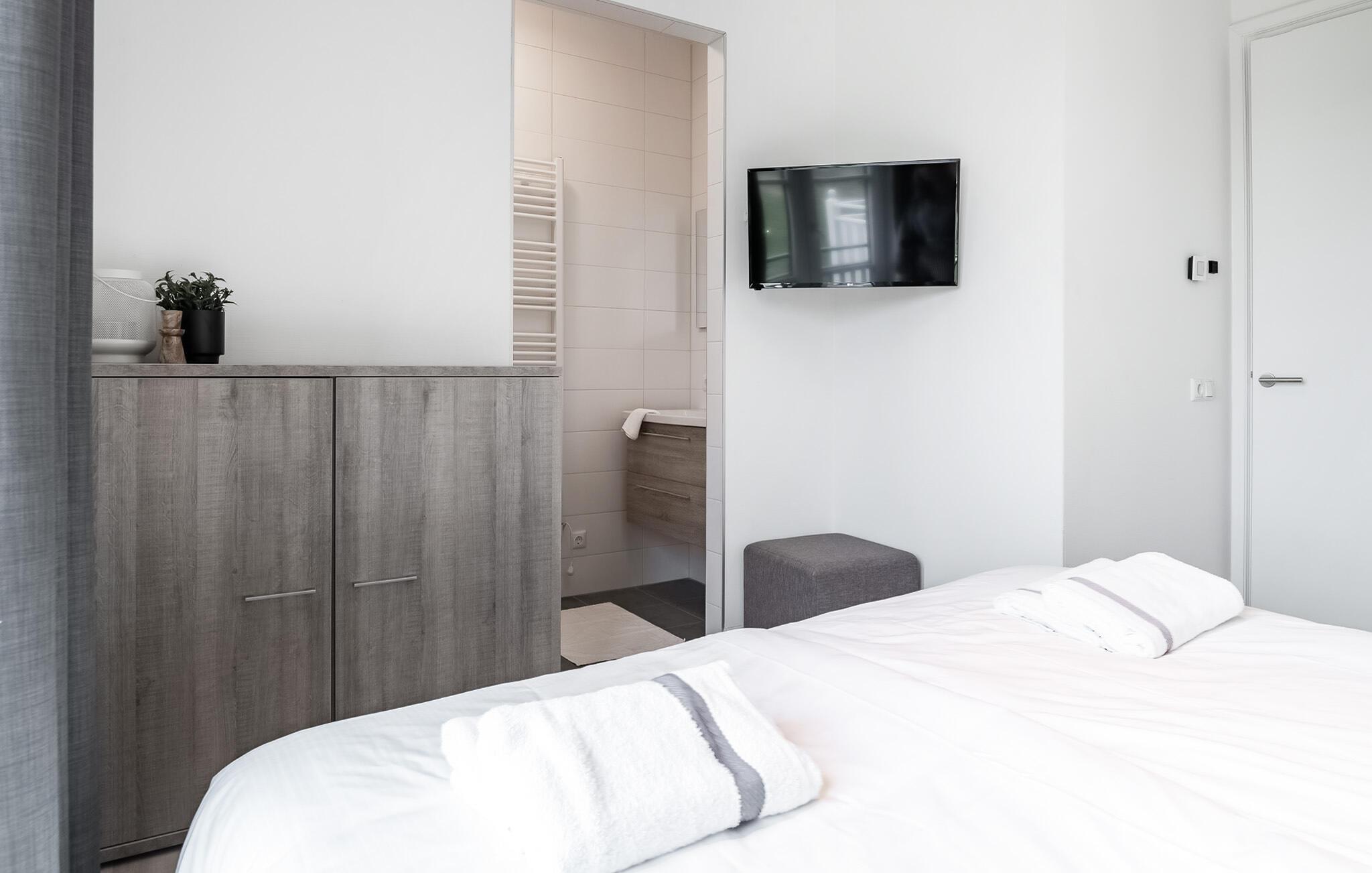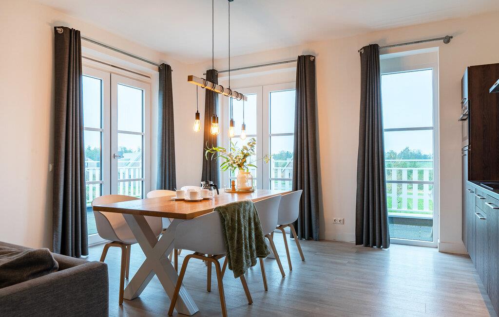 Denne moderne og luksuriøse ferielejlighed i en elegant lejlighedsbygning giver jer det perfekte sted at slappe af. De stilfulde møbler og den lyse, maritime atmosfære skaber en rolig og indbydende atmosfære. Her har I masser af plads til at finde jer godt til rette med familien eller venner. Mød hinanden i det åbne opholdsrum, der succesfuldt kombinerer køkken, spisestue og opholdsstue og lægger op til at lave mad, spise eller slappe af sammen.