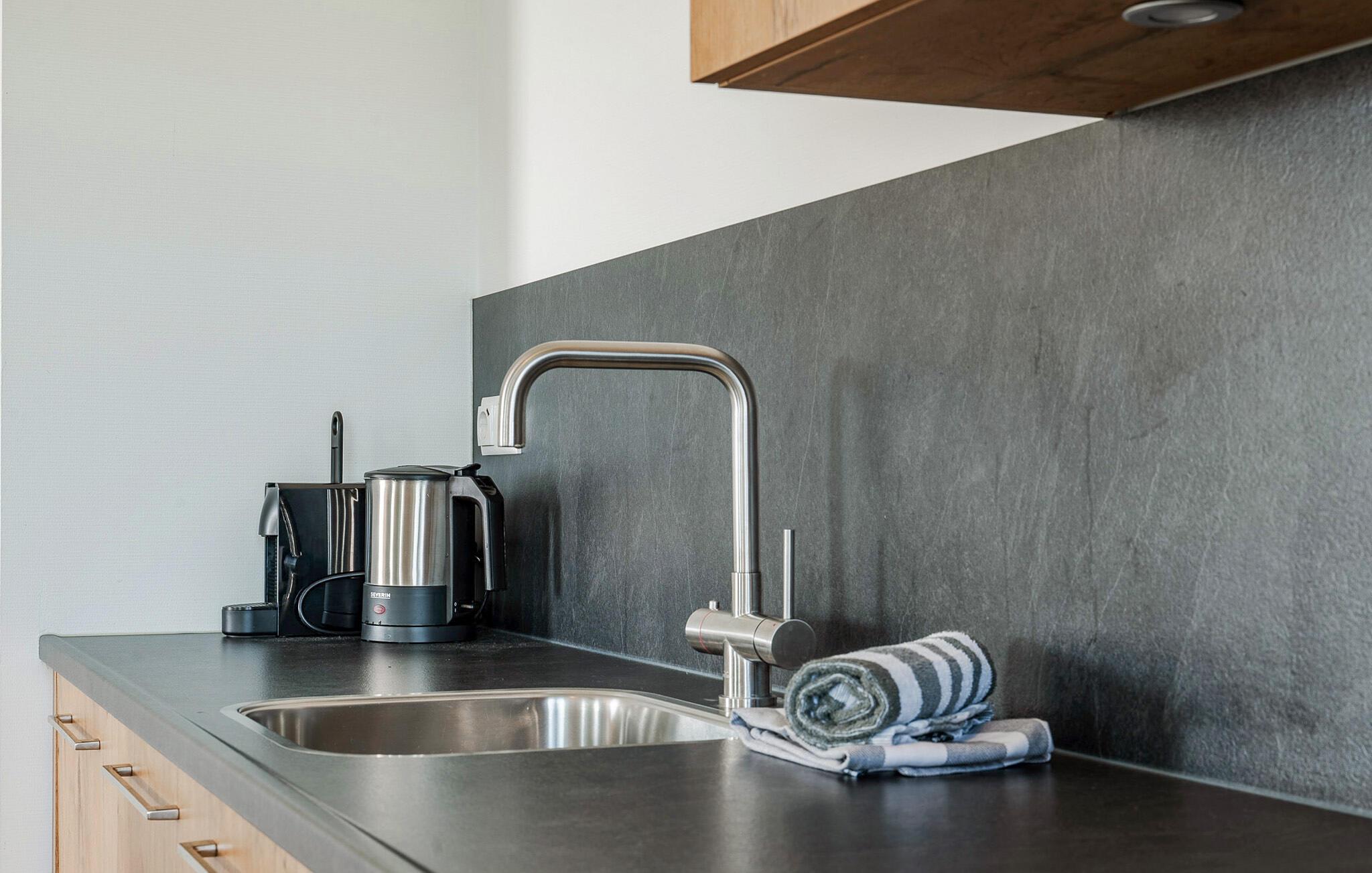 Uanset om det er på den solbeskinnede terrasse eller balkonen med udsigt over de grønne områder – her kan I nyde afslappende timer i eksklusiv komfort. Nyd en vidunderlig udsigt over det omkringliggende landskab fra tagterrassen, som deles med andre gæster, og slap af så meget I ønsker i de to saunaer.