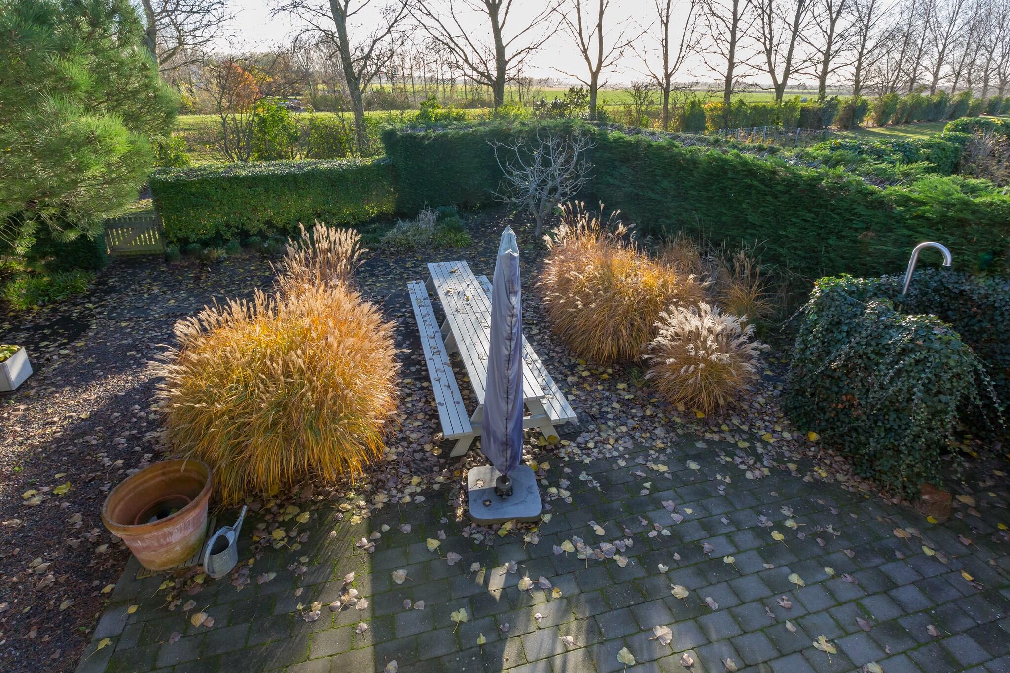 Stueetage: (entre, soveværelse(køjeseng), soveværelse(enkeltseng), Soveværelse med badeværelse(dobbeltseng, badekar, bruser, håndvask, håndvask, toilet), Soveværelse med badeværelse(enkeltseng, enkeltseng, bruser, håndvask), pulterkammer(køle-fryseskab, tørretumbler, vaskemaskine)) På 1. etage: (Stue(Fjernsyn(fladskærm, Hollandske TV-kanaler, Tyske TV-kanaler, Internationale TV-kanaler), pejs, sofahjørne), åbent køkken(spisebord, kogeplade(induktion), elkedel, emhætte, kaffemaskine(kopper), combi-mikroovn, opvaskemaskine , køleskab), toilet) havedøre, balkon, have(privat, indhegnet), cykelopbevaring, havemøbler, parkering