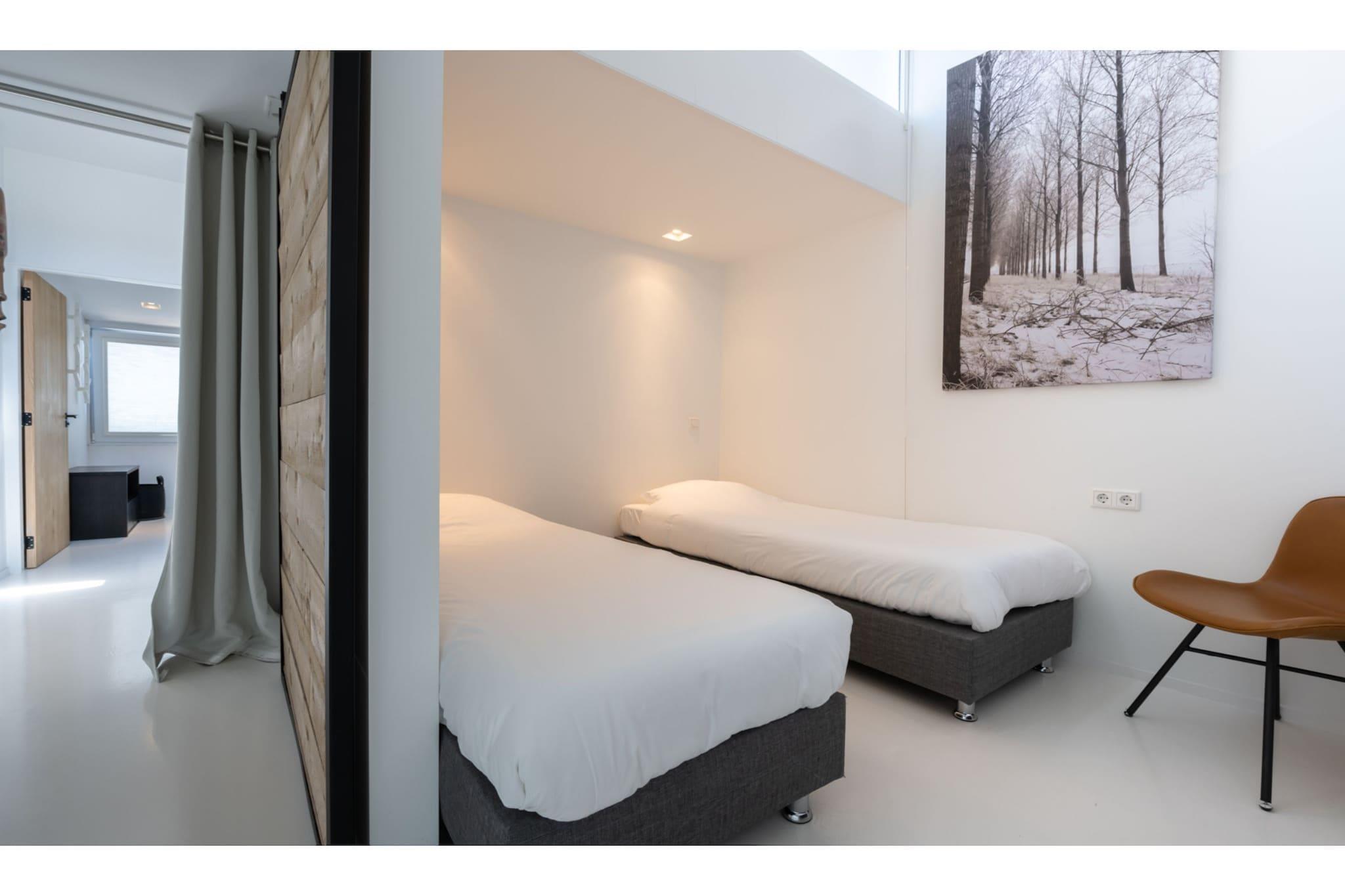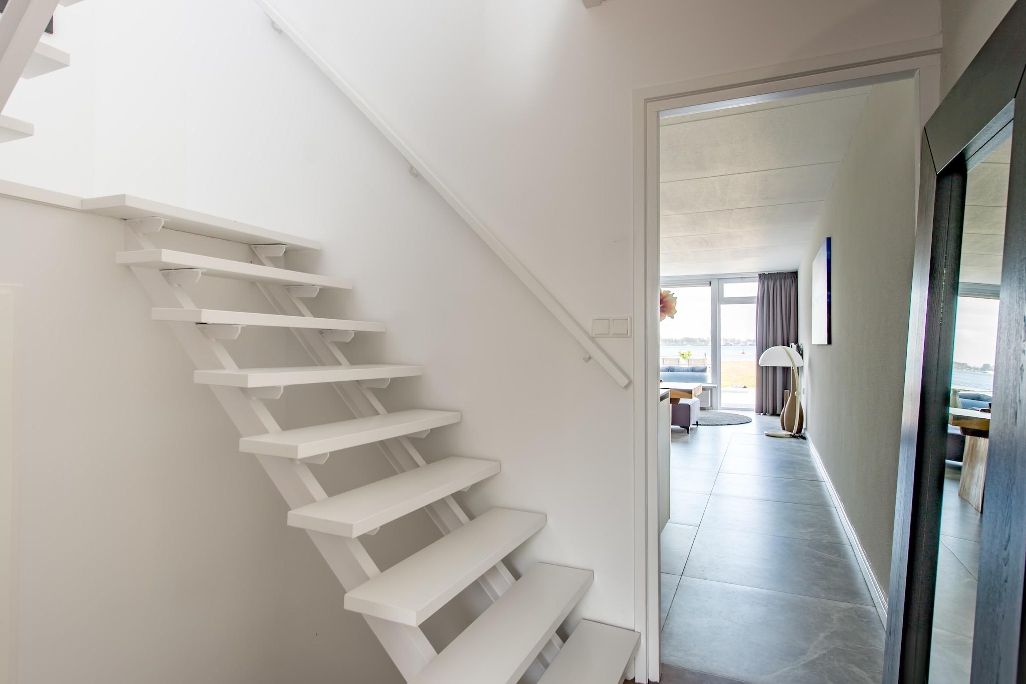 Dette moderne og smagfulde lofthus er unikt beliggende og har en betagende udsigt over Veereøen og byen Veere. Terrassen grænser op ad Veersøen. Du kan gå hen imod vandet herfra. Du vil have swimmingpoolen, surfing og sejladsen bogstaveligt talt foran døren. Terrassen har komfortable havemøbler og to liggestole. Hjemmet har et separat soveværelse i stuen med to enkeltsenge og en sovesofa i Fra stuen på første sal har du en fantastisk panoramaudsigt over søen og byen Veere. Der er et fladskærms-tv i stuen. Ovenpå er der også et badeværelse med bruser, håndvask og toilet. I stueetagen finder du et rummeligt køkken, fuldt udstyret og med et stort spisebord. Fra køkkenet går du direkte til terrassen og derfra til Veereøen. Huset har også en vaskemaskine. Foran huset er der en parkeringsplads. Boligareal: ca 100 m2, grundstørrelse ca 150 m2. Husdyr er velkomne.