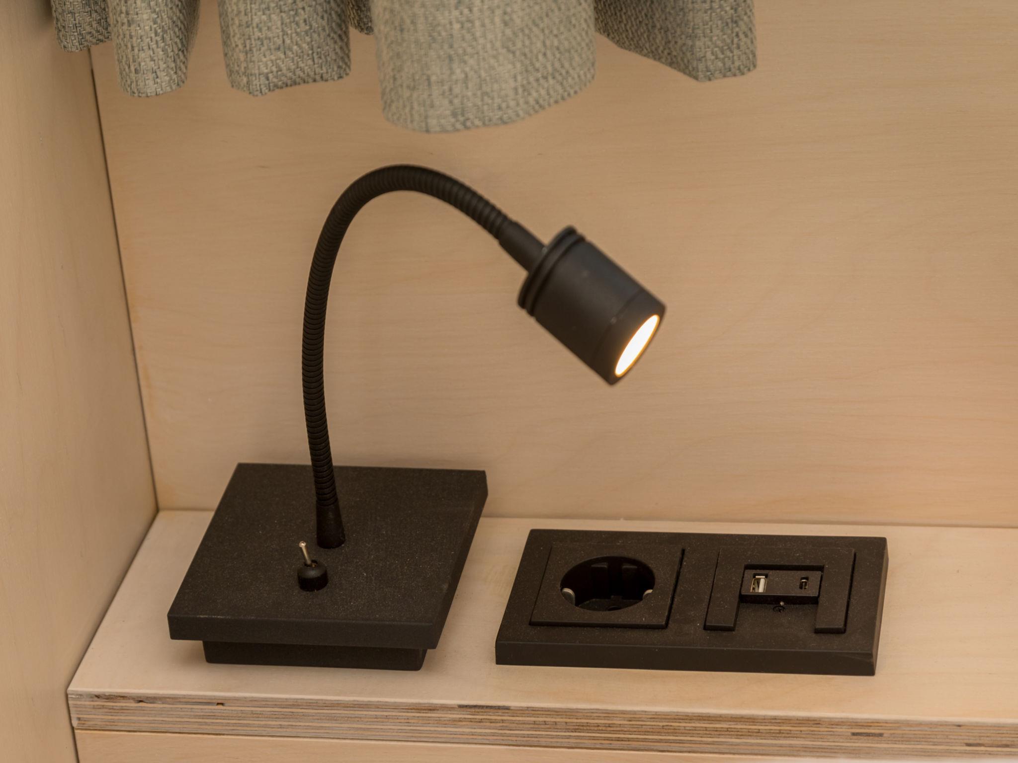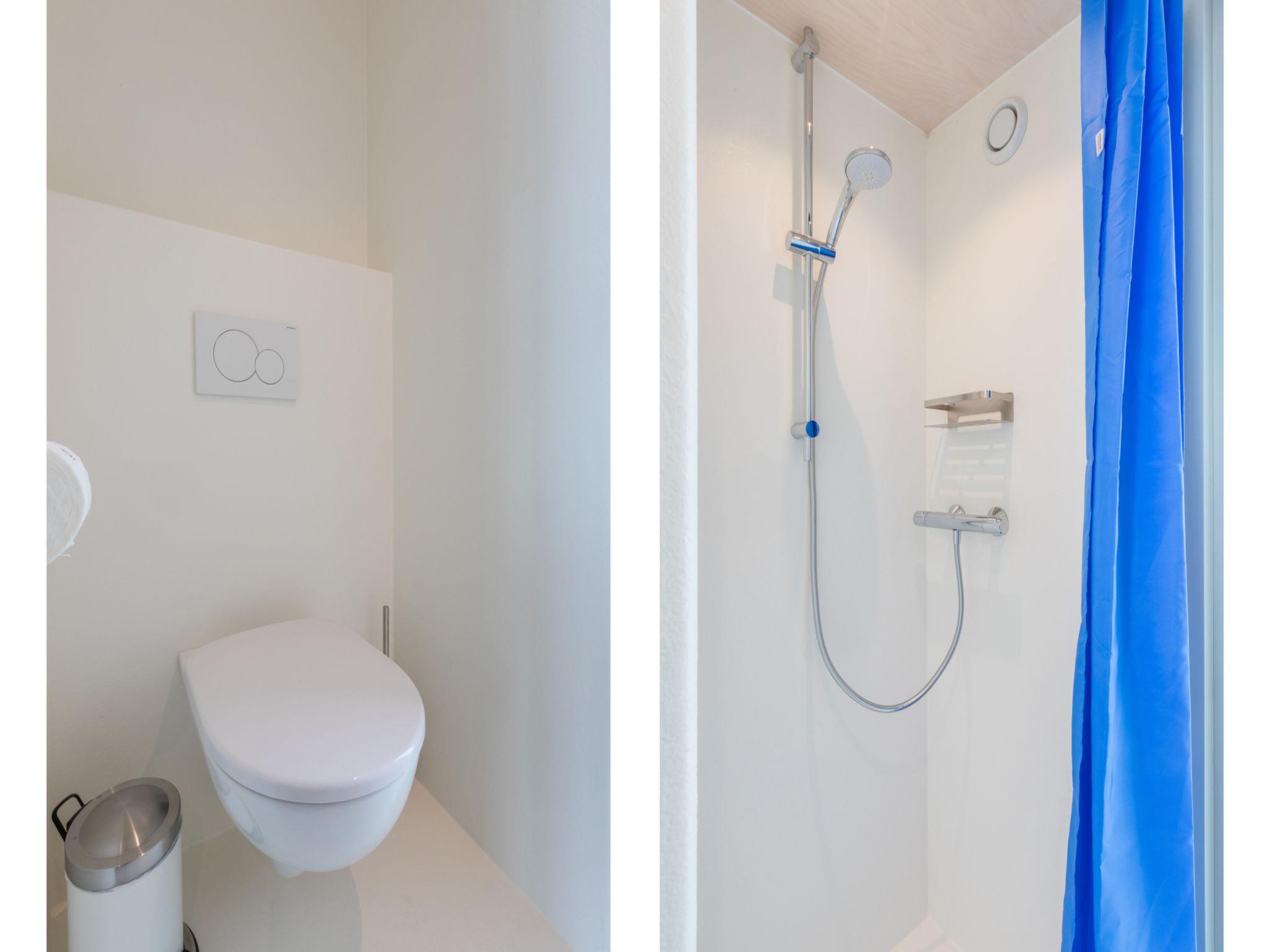 "Seaview Lodge", 1-room chalet 55 m2 on 2 levels. Object suitable for 2 adults + 3 children. Bright, practical and beautiful furnishings: open walk-through room with sliding door, panoramic window with 1 double bed (160 cm, length 200 cm), dining table, kitchen corner and shower/WC. Exit to the terrace. Small kitchen-/living room (Gas stove, 4 gas rings, toaster, microwave, freezer, electric coffee machine). Upper floor: (steep stair) with sloping ceilings, ceiling height 100 - 120 cm with 3 sleeping facilities (3 x 90 cm, length 200 cm). Facilities: Internet (WiFi, free).
