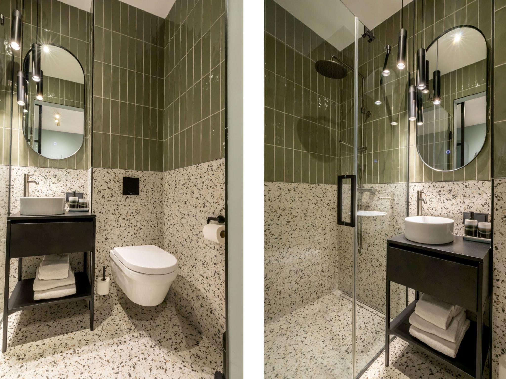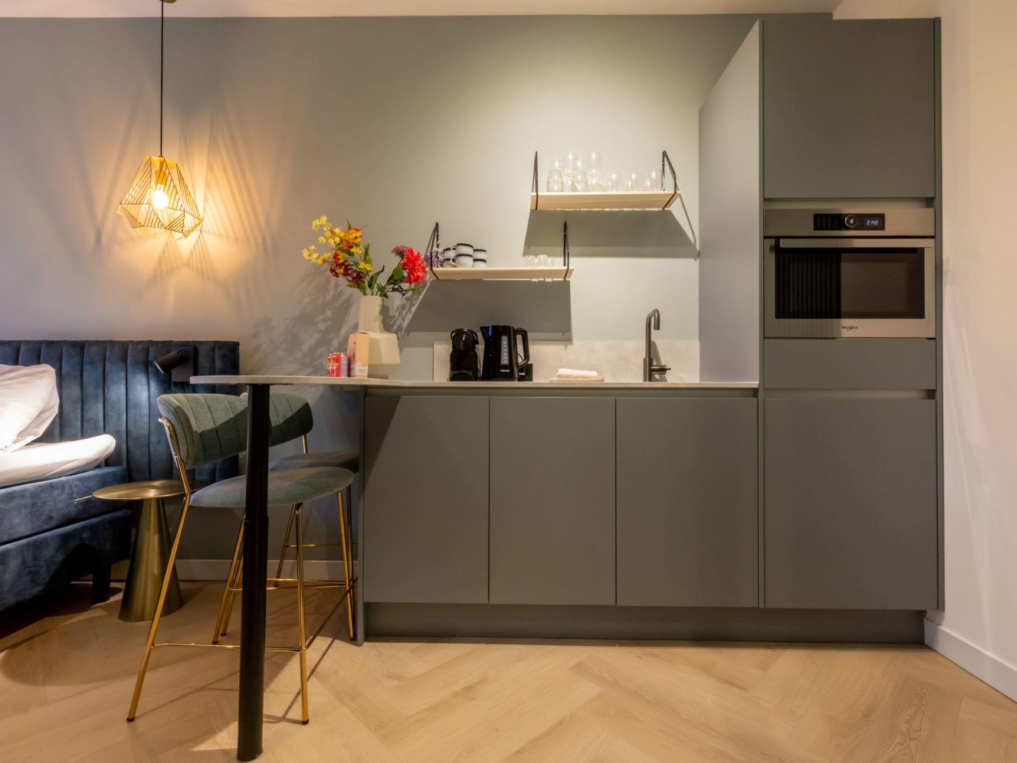 "Zee", 1-room studio 22 m2. Comfortable furnishings: living/sleeping room with 1 double bed (180 cm, length 210 cm), TV. Exit to the terrace. Small kitchen (dishwasher, kettle, electric coffee machine, combination microwave) with bar. Shower/WC. Heating, air-conditioning. Terrace 10 m2, south facing position. Terrace furniture. Facilities: Internet (WiFi, free). Parking (1 car) at the house. Please note: not suitable for children under 2 years. Non-smoking house. Smoke alarm. There is no hob in the kitchen.