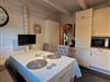Man betritt das Haus über eine kleine Diele über die man in das geräumige Wohnzimmer gelangt . Hier befinden sich 2 große Doppeltüren die zur überdachten Terrasse führen.