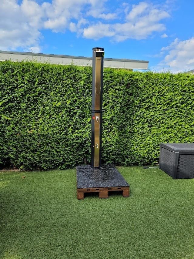 Es gibt in Frühlings- und Sommermonaten einen überdachten Whirlpool und eine Außendusche.