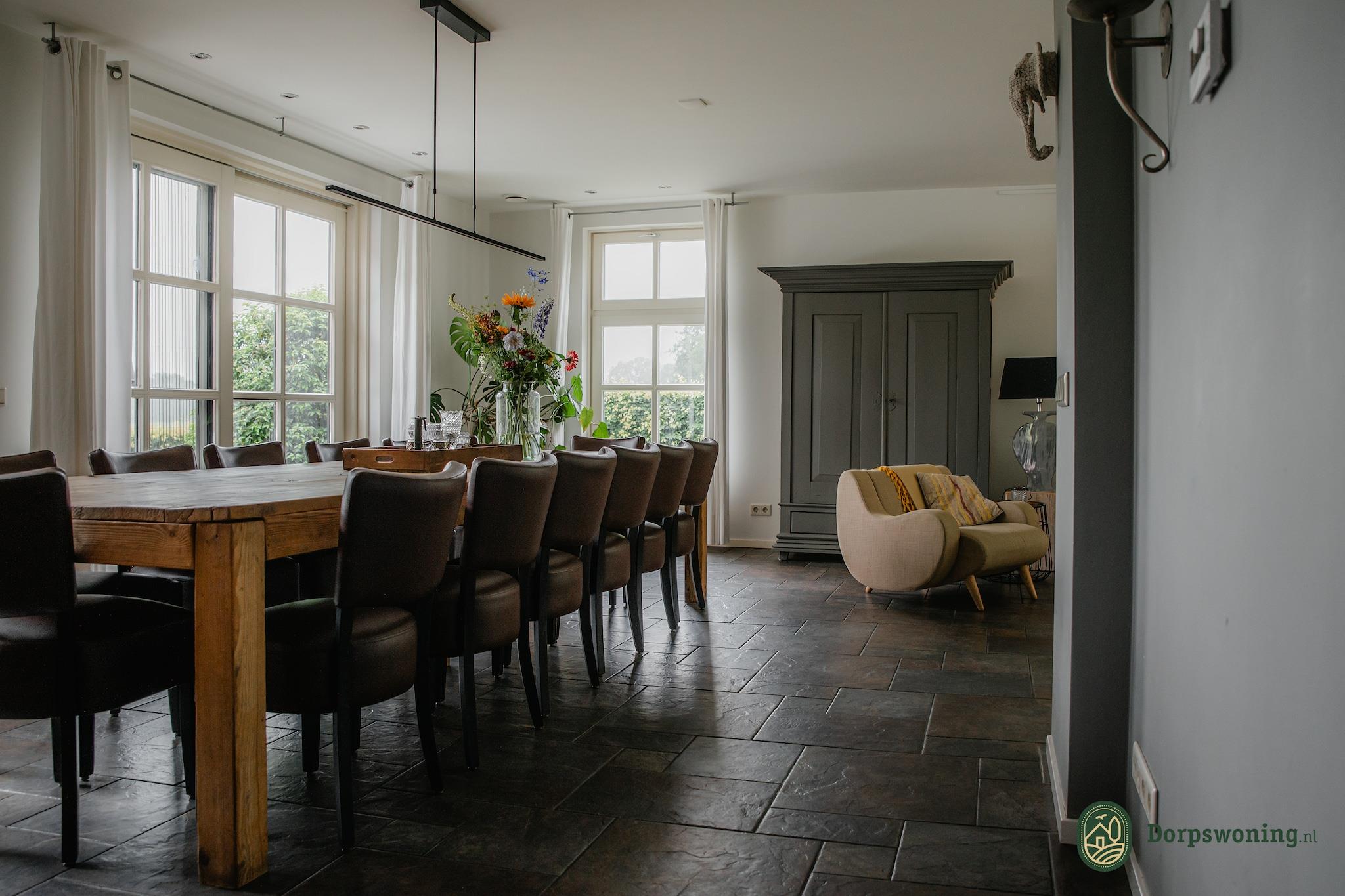 Parterre: (woonkamer(TV(flatscreen), eettafel(14 personen), kachel(hout), DVD-speler, radio, CD-speler, stereo-installatie), woonkeuken(fornuis(keramisch), koffiezetapparaat, oven, combimagnetron, afwasmachine, koelkast, vriezer, kinderstoel), slaapkamer(2x 1-pers. bed(dekbed), stapelbed), badkamer(douche, toilet)) Op de 1e etage: (slaapkamer(2x 1-pers. bed(dekbed)), slaapkamer(2x 1-pers. bed(dekbed)), slaapkamer(2x 1-pers. bed(dekbed)), slaapkamer(2x 1-pers. bed(dekbed)), slaapkamer(2-pers. bed(2 persoons dekbed)), badkamer(douche, toilet)) garage, open haard, magnetron, wasdroger, bad of douche, wasmachine, verwarming(CV), terras(36 m2), tuin(omheind), fietsenberging, tuinmeubilair, BBQ, parking, ligstoelen, parasol, tafeltennistafel, tafelvoetbal, kinderbed, strijkplank