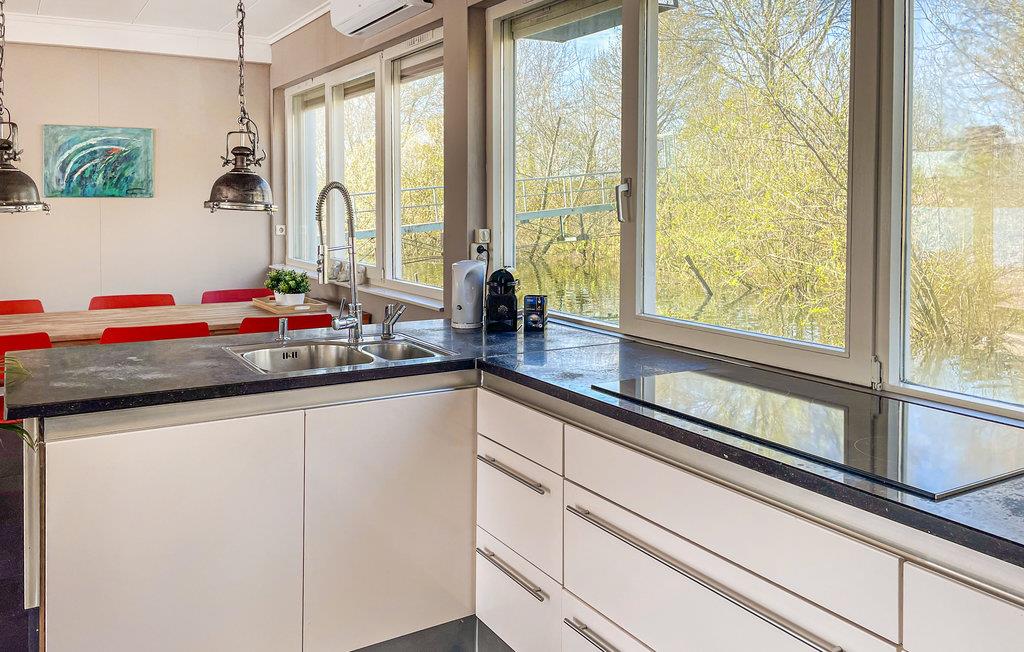 Glæd jer til denne store, indbydende ferielejlighed på Lithse Ham, som er kombineret med en ekstra lejlighed. Det er den optimale mulighed for en uforglemmelig ferie på vandet. Lejligheden er rummelig og lægger op til at slappe af, nyde udsigten over vandet, lave mad i det moderne køkken eller bare se en film. Efter den lyse stue kommer I til den store terrasse, som lægger op til at dvæle under pavillonen, og hvorfra I kan hoppe direkte i vandet, bade og solbade.