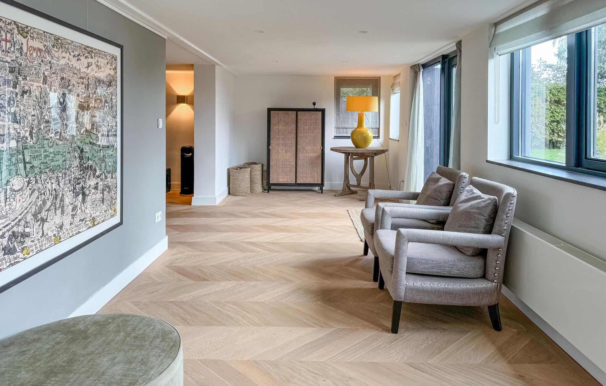 I denne rummelige villa kan I opleve komfort og hygge fordelt på tre etager. Stuen med Sonos-system og pejs skaber en indbydende atmosfære til hyggelige aftener. Hovedsoveværelset i stueetagen tilbyder jer et privat badeværelse og endda en dampkabine – ideelt til afslapning efter en lang dag ved vandet. På samme etage, med direkte adgang til haven, finder I endnu en stue med tv, som fleksibelt kan bruges som soveværelse. På terrassen med udsigt over søen og varmelamper kan I nyde de lange sommeraftener i hyggelige omgivelser.