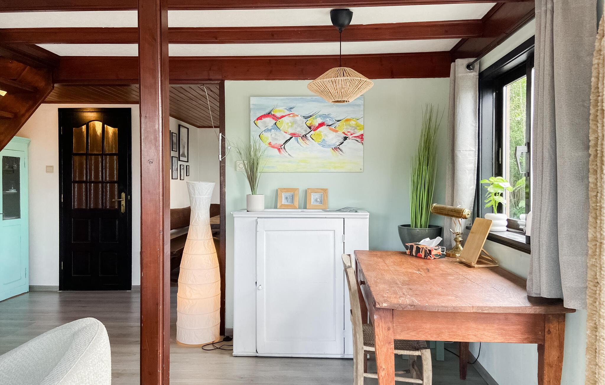 Hvis I altid har drømt om en ferie på en husbåd, kan I nu opfylde denne drøm. I Loosdrecht, lidt syd for Amsterdam, venter denne stilfulde husbåd på jer med plads til op til fire personer. Glæd jer til at opleve husbådens hyggelige indretning. Et hyggeligt træspisebord i køkkenet, den komfortable sofa og de behagelige lænestole får jer næsten til at glemme, at I befinder jer på en husbåd. Takket være de brede vinduer strømmer der masser af dagslys ind i rummene og giver jer en smuk udsigt over havnen.