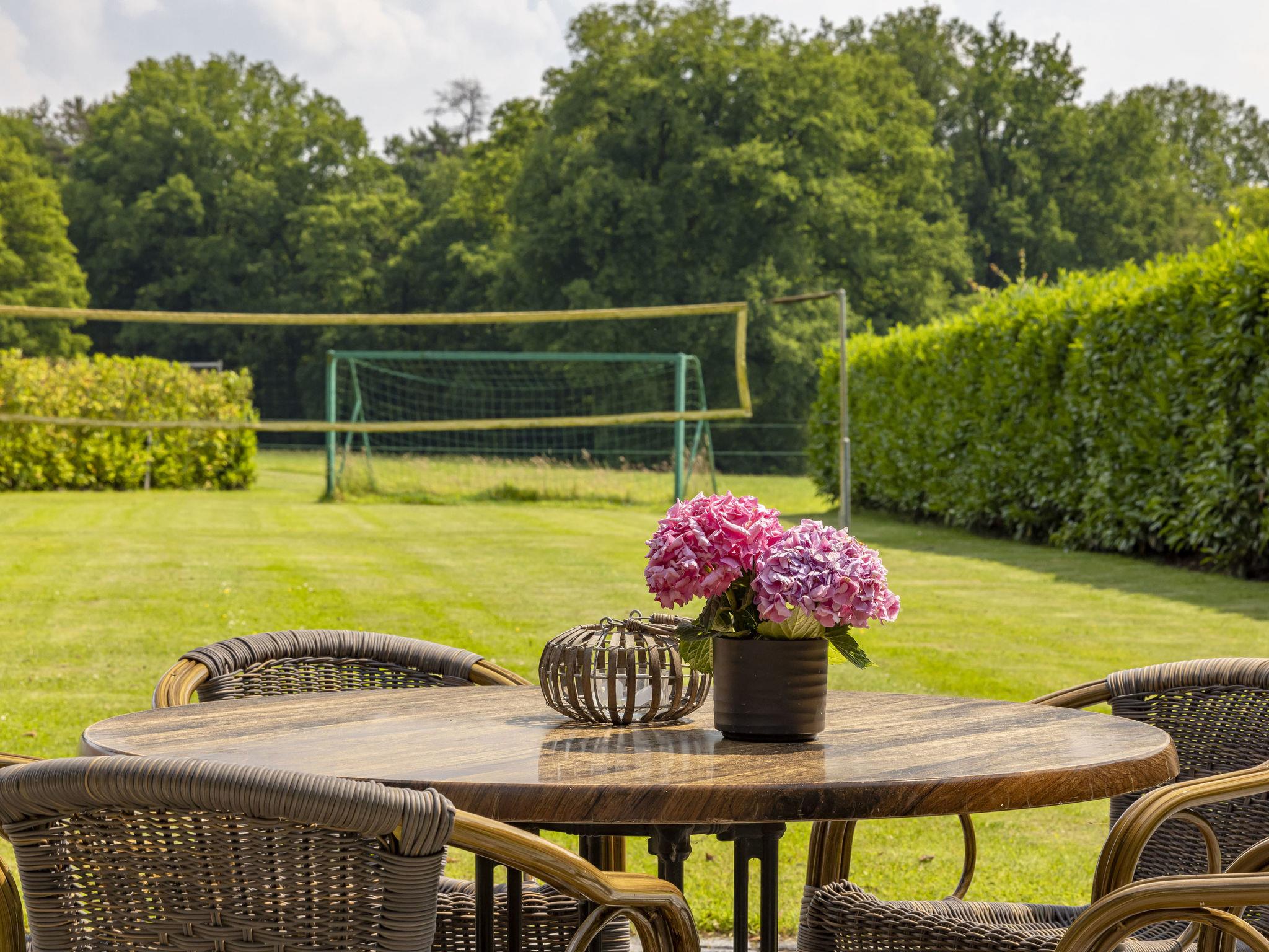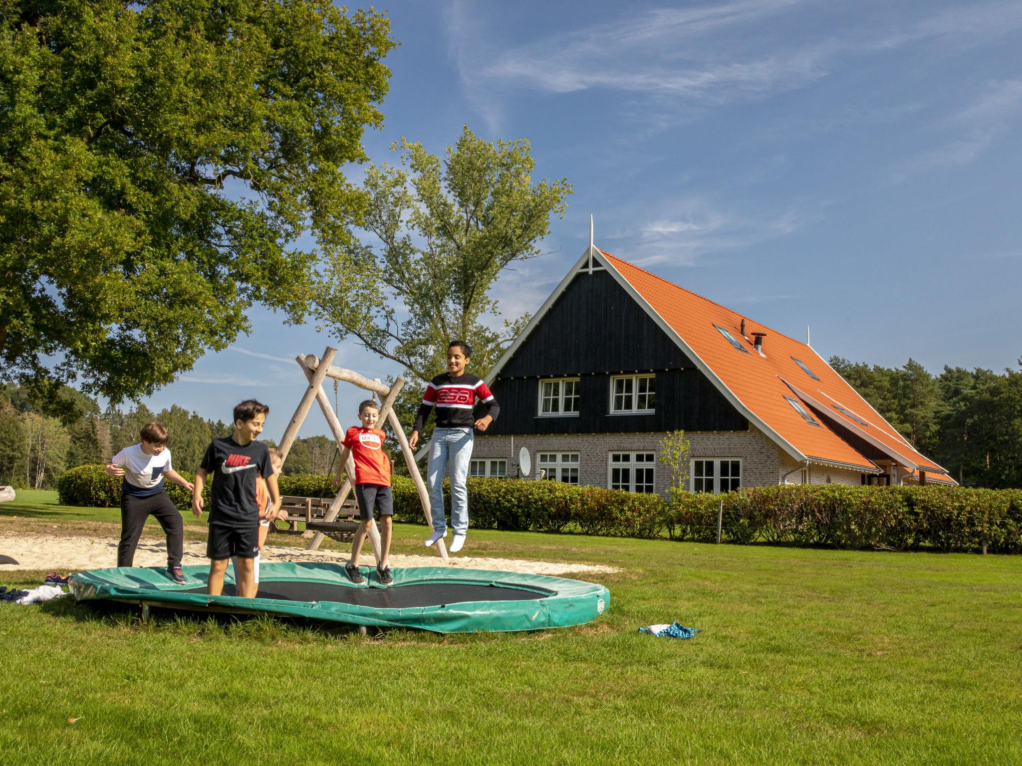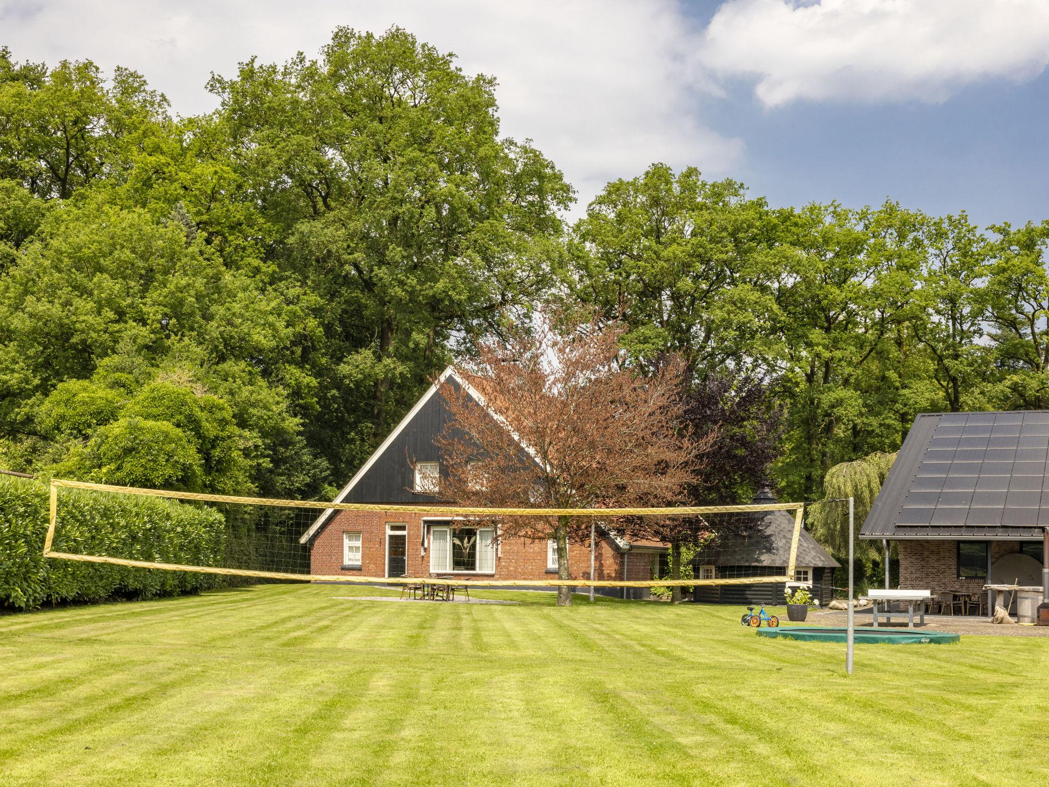 "Familieboerderij", 8-room farmhouse 230 m2 on 2 levels. Comfortable and rustic furnishings: entrance hall with separate WC. Living/dining room with TV. 4 rooms, each room with 2 beds, hand-basin and shower/WC. 1 room with 2 beds, hand-basin and hip bath. Kitchen (6 hot plates, oven, dishwasher, kettle, microwave, electric coffee machine) with dining table. Heating. Upper floor: 2 rooms, each room with 2 beds, hand-basin and shower/WC. Terrace, garden. Terrace furniture, box-room. Facilities: washing machine, dryer, children's high chair, baby cot for up to 3 year olds. Internet (WiFi, free). Please note: non-smokers only. Smoke alarm. In the garden is a Finnish Kota and a hot tub for private use.