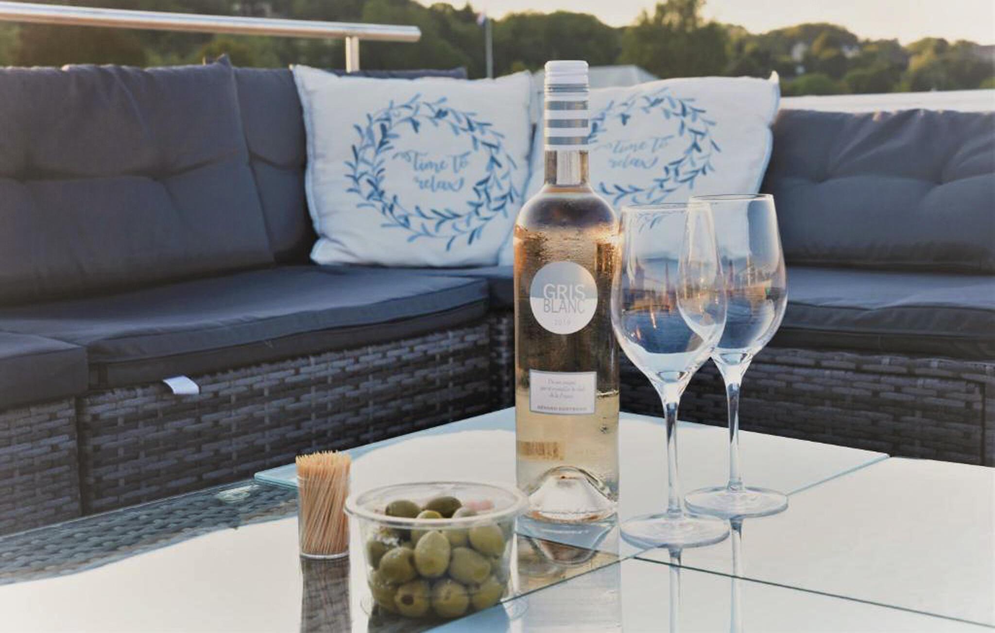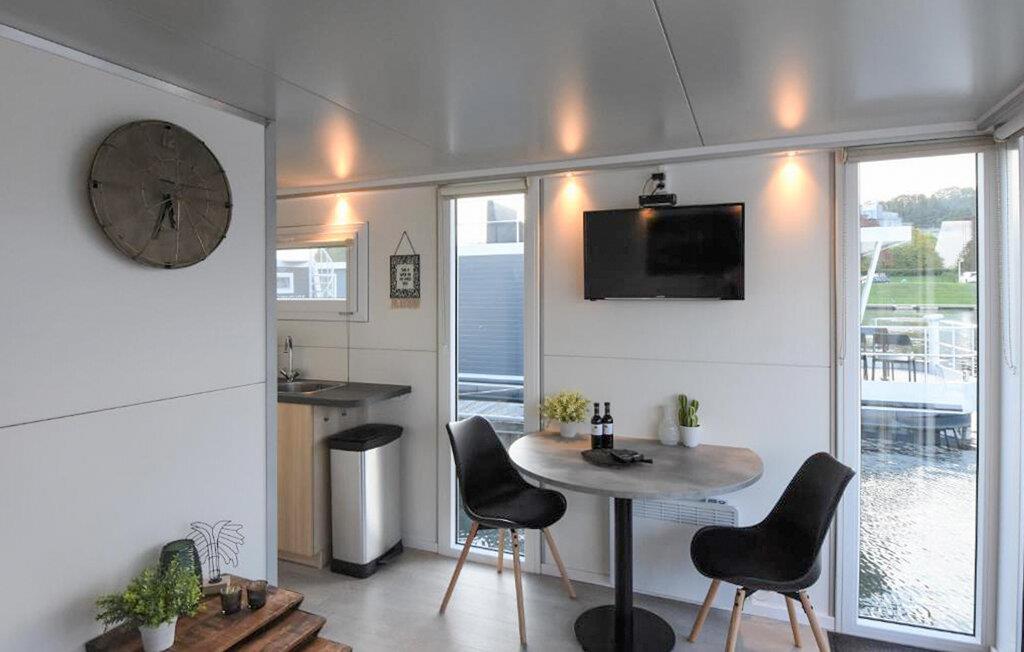 Denne husbåd ligger fortøjet på en dejlig lystbådehavn med masser af faciliteter og en fantastisk restaurant i gåafstand. Som familie kan I se frem til en afslappende tid i denne husbåd, som har moderne møbler og udstyr. Nyd komforten i den lyse stue, hvor I kan lave mad sammen eller bare slappe af i sofaen. Begynd jeres dag med en dejlig morgenmad på den overdækkede terrasse eller nyd eftermiddagssolen på tagterrassen med en kølig drink.