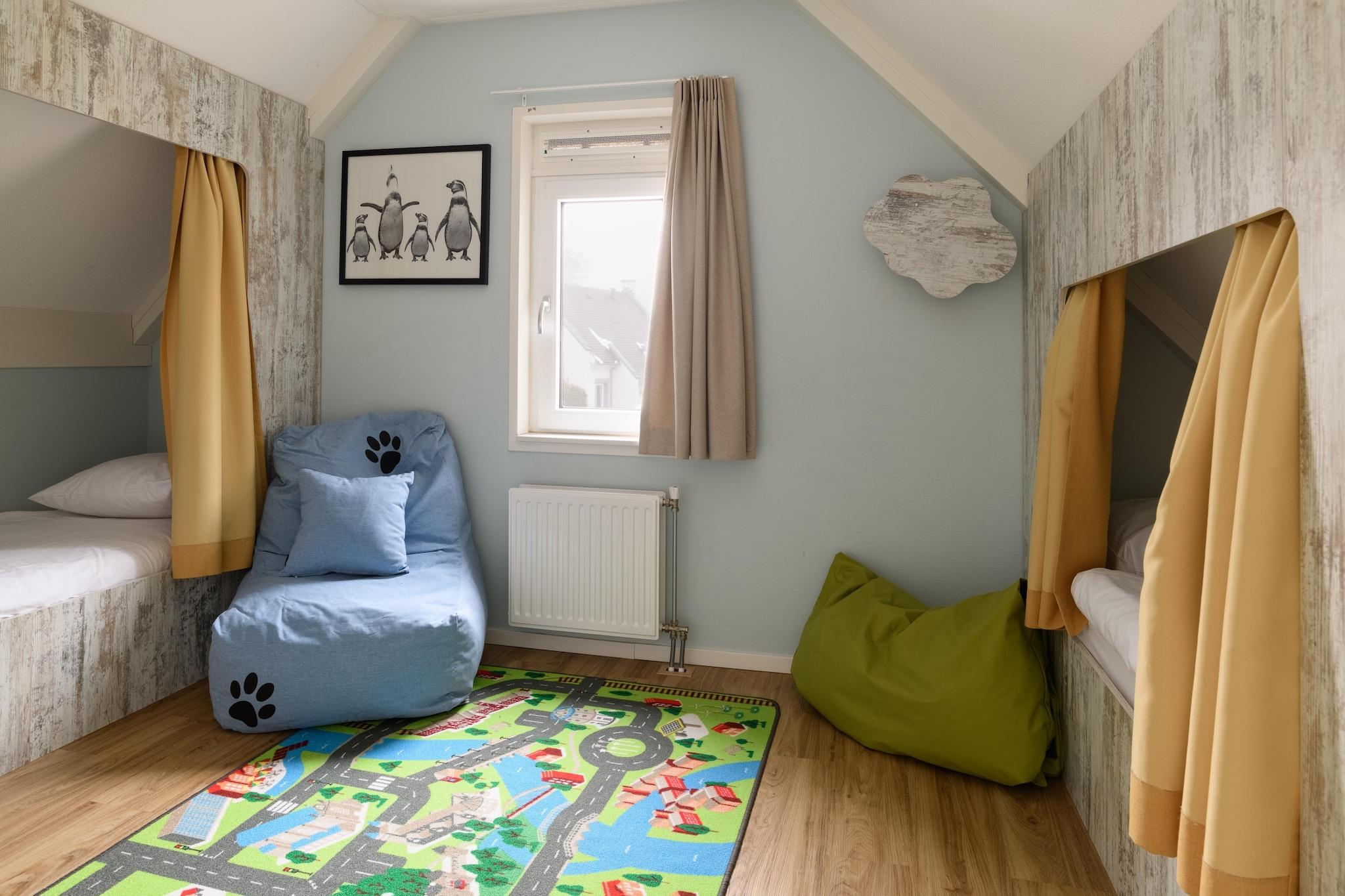 Gemt i det fredfyldte Resort Maastricht er dette charmerende fritliggende feriehus skræddersyet til (bedste)forældre med små. Indenfor finder du et lyst, moderne rum med en hyggelig stue, fuldt udstyret køkken med køleskab i amerikansk stil og et soveværelse i stueetagen med en-suite - ideel til ophold i flere generationer. Tankevækkende detaljer som babylåger, børnesikre stik og en masse legetøj sikrer din ro i sindet og børnenes glæde. Med plads til 4 voksne og 4 børn byder dette hjem også velkommen til lodne familiemedlemmer! Udnyt den rummelige have og den møblerede terrasse til udendørs leg, eller udforsk nærliggende hundevenlige vandreruter som Dousberg Trail. For mere halelogrende sjov, tag til Stadspark Maastricht, et yndet sted for både lokale og besøgende at lade hunde strejfe og socialisere. Kun få minutter væk kan du opdage Maastrichts pulserende hjerte - hvor historisk charme møder moderne spisning. Forkæl dig selv med lokale smagsoplevelser på kæledyrsvenlige caféer som Café Zondag og De Brandweerkantine, eller slentre de brostensbelagte gader med din hvalp på slæb. Uanset om du nyder kaffe i solen eller planlægger en familie-picnic, byder dit ophold på den perfekte blanding af afslapning og aktivitet for alle aldre.