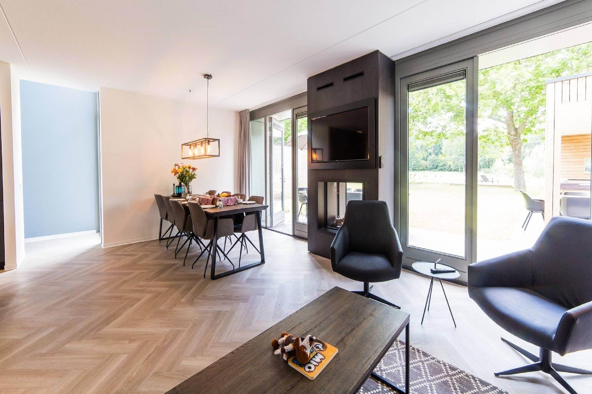 Lakeside Luksus med moderne flair Velkommen til din private flugt ved foden af Maastrichts maleriske Dousberg, hvor high-end design møder varm gæstfrihed. Denne arkitektonisk slående villa har ekspansive glasvægge, en gennemsigtig pejs, der forbinder den indendørs lounge med en overdækket terrasse, og et fantastisk åbent køkken med en kogeø. Interiøret er hyggeligt, men alligevel raffineret og tilbyder alt, hvad du behøver for et afslappende ophold - uanset om du rejser som en gruppe eller med dit elskede kæledyr. Wellness, udsigt til vandet og udendørsliv Træd udenfor til dit eget stykke sindsro. En privat badebro har udsigt over dammen, perfekt til at nippe til morgenkaffe eller nyde solnedgangsreflektioner. Gå en tur forbi haven til din overdækkede udendørs wellness-zone komplet med sauna, boblebad, udendørs køkken og spiseplads - ideel til al fresco-måltider i al slags vejr. Glasfacaden udvisker grænsen mellem indendørs og natur og bringer lys og udsigt ind i alle hjørner af hjemmet. Kæledyrsvenlig sjov og lokale lækkerier Med en-suite badeværelser i hvert soveværelse og to øverste værelser, der åbner til en balkon med udsigt over vandet, får alle deres eget tilbagetog. Tag dine lodne venner med - Hoge Fronten Park og Jeker Valley stier i nærheden er perfekte til kæledyrsture, mens lokale caféer som Café Zondag ofte byder firbenede gæster velkommen på deres terrasser. Kun få minutter fra din dør kan du udforske Wilhelmuspleins restauranter, bagerier og bistroer - lokal smag, når den er bedst!