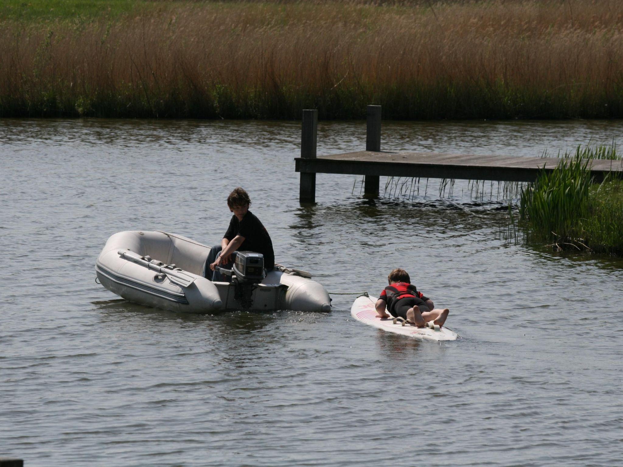 The house lies by the open channel to Ijsselmeer. You can go on boat trips on Ijsselmeer from your own boot jetty or just cruise around the park e.g. with a dinghy. The sandy and surfing beach with a boulevard is just a couple of hundred metres away through the park.