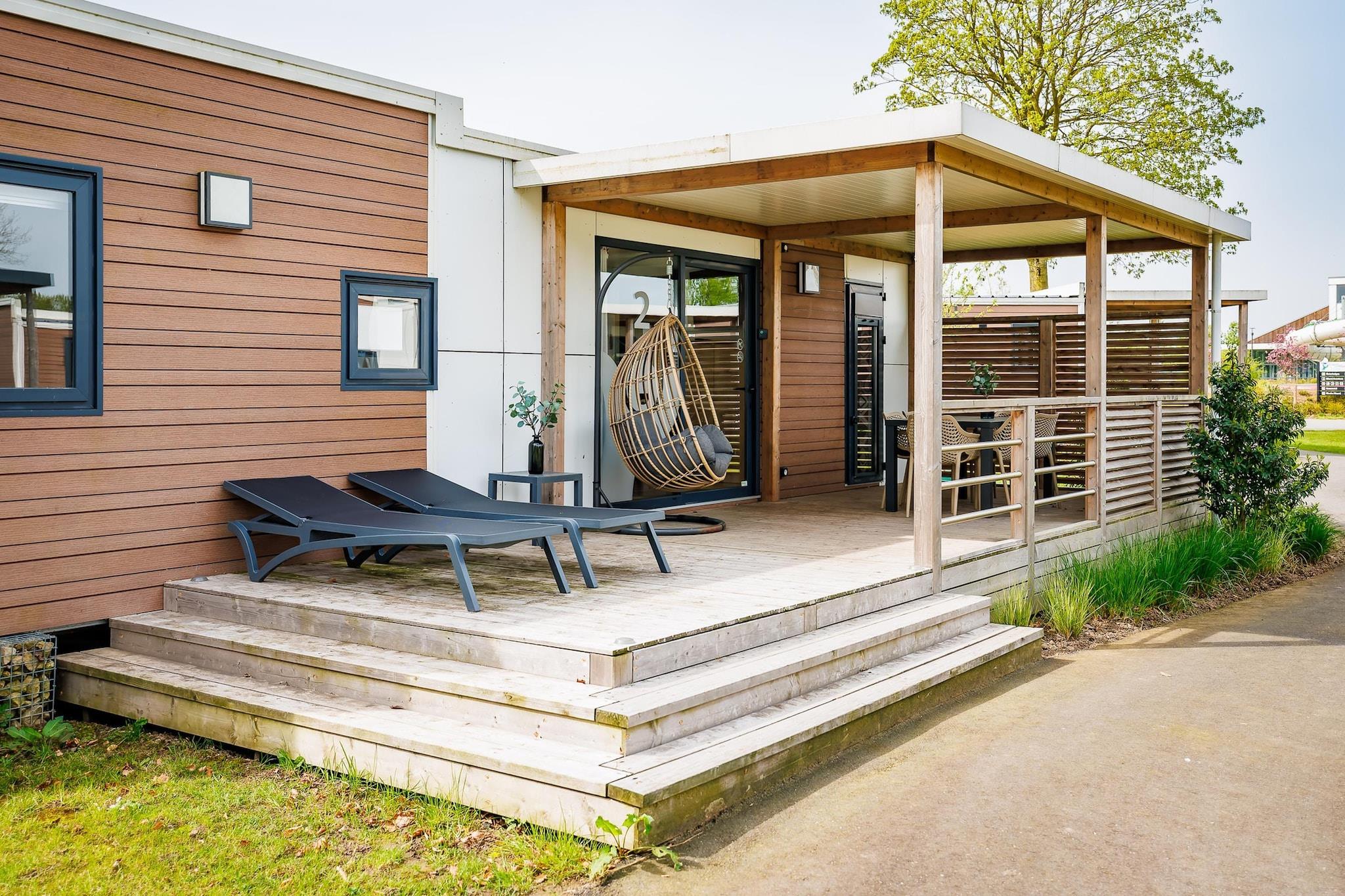 Stilfuld komfort i hjertet af parken Velkommen til Eilandlodge - et moderne, lyst tilflugtssted beliggende centralt i den pulserende feriepark Eiland van Maurik. Perfekt til familier eller grupper, denne stilfulde lodge kan rumme op til 4 voksne og 2 børn, og tilbyder tre hyggelige soveværelser (inklusive en sjov køjeseng til de mindste) og to komplette badeværelser for ekstra komfort og privatliv. Gennemtænkt møbleret med slanke materialer og varme accenter, vil du føle dig hjemme i det øjeblik, du træder ind. Nyd dovne morgener eller solnedgangsaftener på den delvist overdækkede træveranda, komplet med liggestole og udendørs siddepladser. Eventyr, afslapning og kæledyrsvenlig sjov Med sin nærhed til swimmingpoolen og andre parkfaciliteter er lodgen et knudepunkt for både afslapning og aktivitet. Og da dine firbenede venner er velkomne, kan din ferie omfatte hele familien! Gå en tur langs marinaen med din hvalp, eller udforsk de naturskønne kæledyrsvenlige vandrestier, der snor sig gennem det omkringliggende Gelderlands landskab. Der er endda en udpeget hundestrand i nærheden ved Recreatiegebied De Meent, hvor hunde kan plaske og lege frit. Lokale spisesteder og hollandske lækkerier Efter en dag med leg kan du forkæle dig selv med lokale smagsoplevelser. Nyd spisning ved vandet på 't VeerHuys, et elsket sted, der tilbyder traditionelle hollandske retter og frisk fisk og skaldyr, eller udforsk skjulte caféer i Maurik for kaffe og æbletærte med udsigt. Uanset om du sejler, cykler eller slapper af ved poolen med din hund slumrende i nærheden, er Eilandlodge din base for uforglemmelige, kæledyrsvenlige ferieminder.