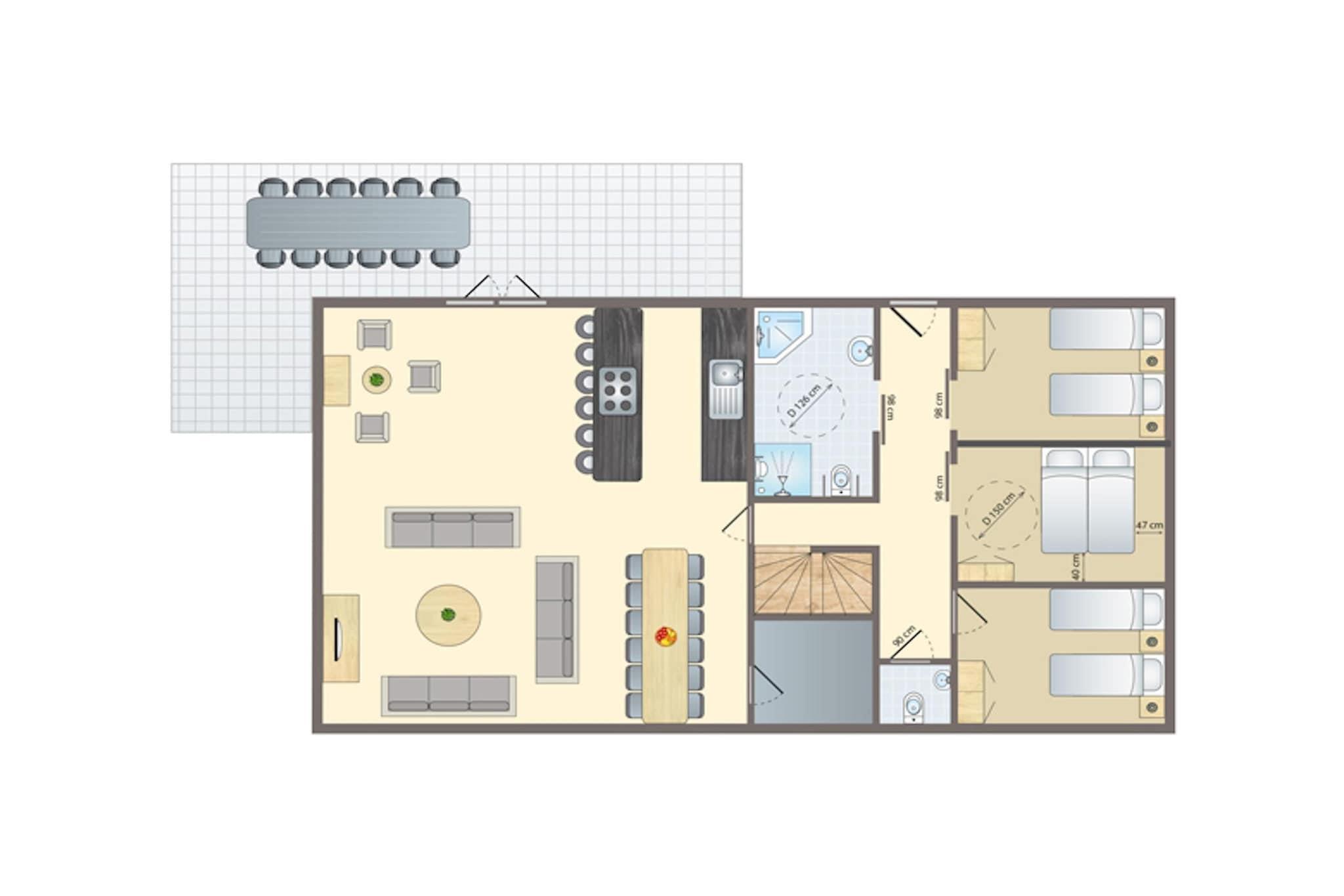 Dette fritliggende, kørestolsvenlige feriehus ligger i den rummelige feriepark Waterpark De Bloemert, beliggende ved Zuidlaardermeer. Det ligger lige inden for provinsen Drenthe, 3 km fra landsbyen Zuidlaren og tæt på naturreservater såsom nationalparken Drentsche Aa og Geopark De Hondsrug. Groningens pulserende centrum ligger 18 km derfra. Feriehuset ligger i ferieparkens skovområde. Ejendommen dækker to etager og er komfortabelt og fuldt møbleret. I stueplan er der en dejlig stue med 150 cm vendecirkel og TV. Det åbne køkken, komplet med en kogeø, omfatter en kombination af mikroovn og opvaskemaskine. Spisebordet er mindst 70 cm højt og velegnet til at sidde i en stol eller en kørestol. Der er tre soveværelser, der hver er udstyret med to enkeltsenge med boksmadrasser. I et af soveværelserne er de to enkeltsenge sat op til at fungere som dobbeltseng. I dette soveværelse er der minimum 60 cm plads på den ene side af sengen og en vendecirkel på mindst 120 cm. Et tilpasset badeværelse er tilgængeligt, udstyret med en flad bruser med en sikkerhedsbøjle, et brusesæde med armlæn og et hævet toilet. Vendecirklen i badeværelset er mindst 120 cm. Der er separat toilet i gangen. Et indendørs depotrum fuldender boligen. På første sal er der tre soveværelser med dobbeltsenge, der hver er udstyret med to enkeltsenge med boksmadrasser. Der er også to badeværelser, begge med bruser. Der er et separat toilet på reposen. Udenfor er der en dejlig have med terrasse, der er indrettet med havemøbler. Der er asfalteret adgangssti til sommerhuset. Huset er barrierefrit, selvom der kan være nogle begrænsninger ved hoveddøren. En rampe er tilgængelig på anmodning. Minimum dørbredde er 85 cm. Der er parkering til én bil ved feriehuset for gæster med handicapkort. Centrale parkeringspladser er også tilgængelige på ferieparken. I ferieparken Waterpark de Bloemert kan der reserveres forskellige typer feriehuse og hytter til to til tolv personer. Nogle typer har sauna og/eller privat indendørs swimmingpool.