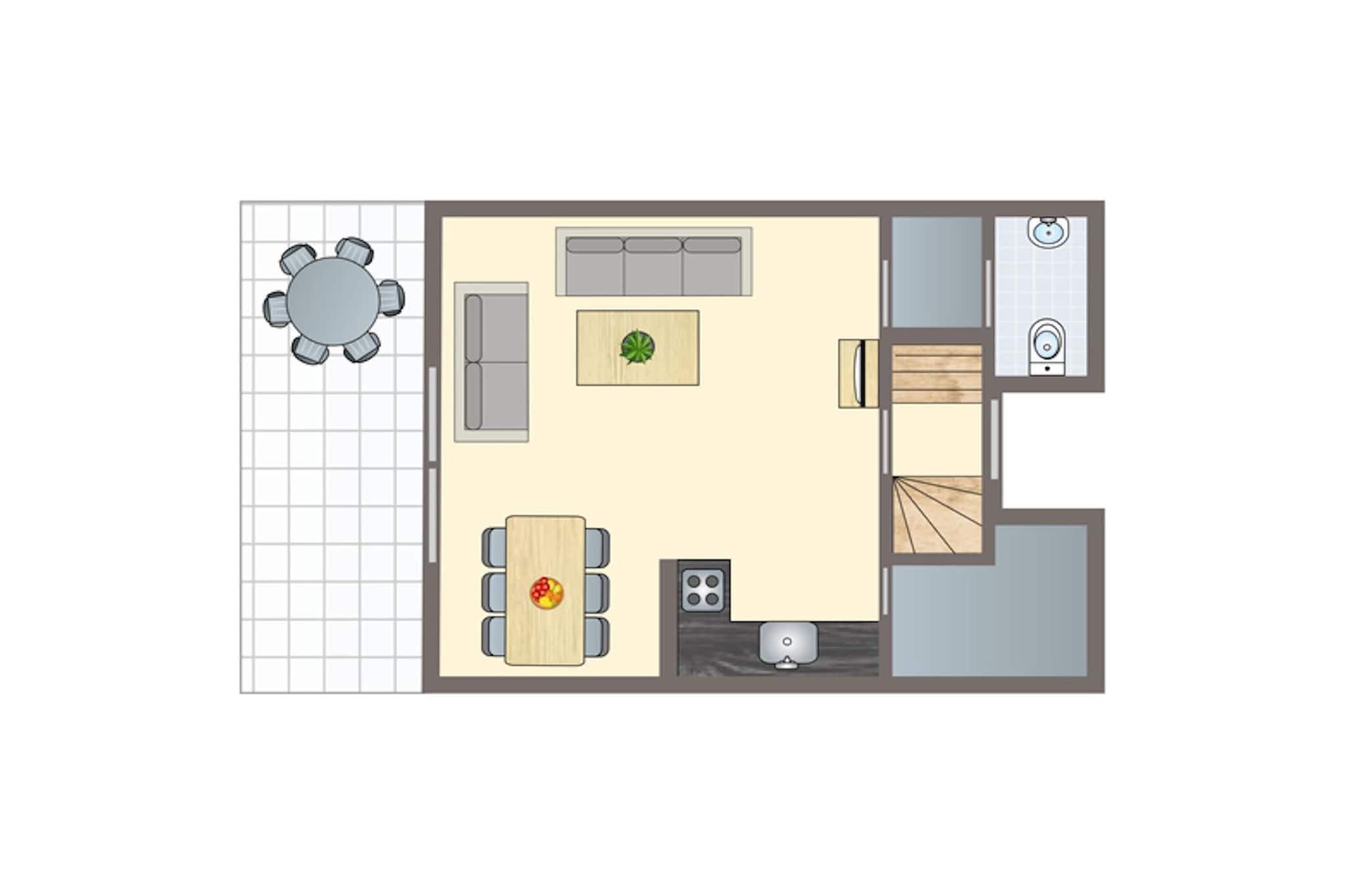 Stueetage: (entre(toilet), Stue(Fjernsyn, DVD-afspiller, radio, CD-afspiller), åbent køkken(elkedel, komfur(gas), kaffemaskine(kopper), combi-mikroovn, opvaskemaskine , køle-fryseskab), pulterkammer(tørretumbler, vaskemaskine)) På 1. etage: (soveværelse(dobbeltseng eller 2 enkeltsenge Senge), soveværelse(enkeltseng, enkeltseng), soveværelse(køjeseng), badeværelse(badekar eller bruser, håndvask, håndvask, toilet), Repos(trappegitter)) fortøjningsbro, terrasse, have, havemøbler, parkering, barneseng, barnestol