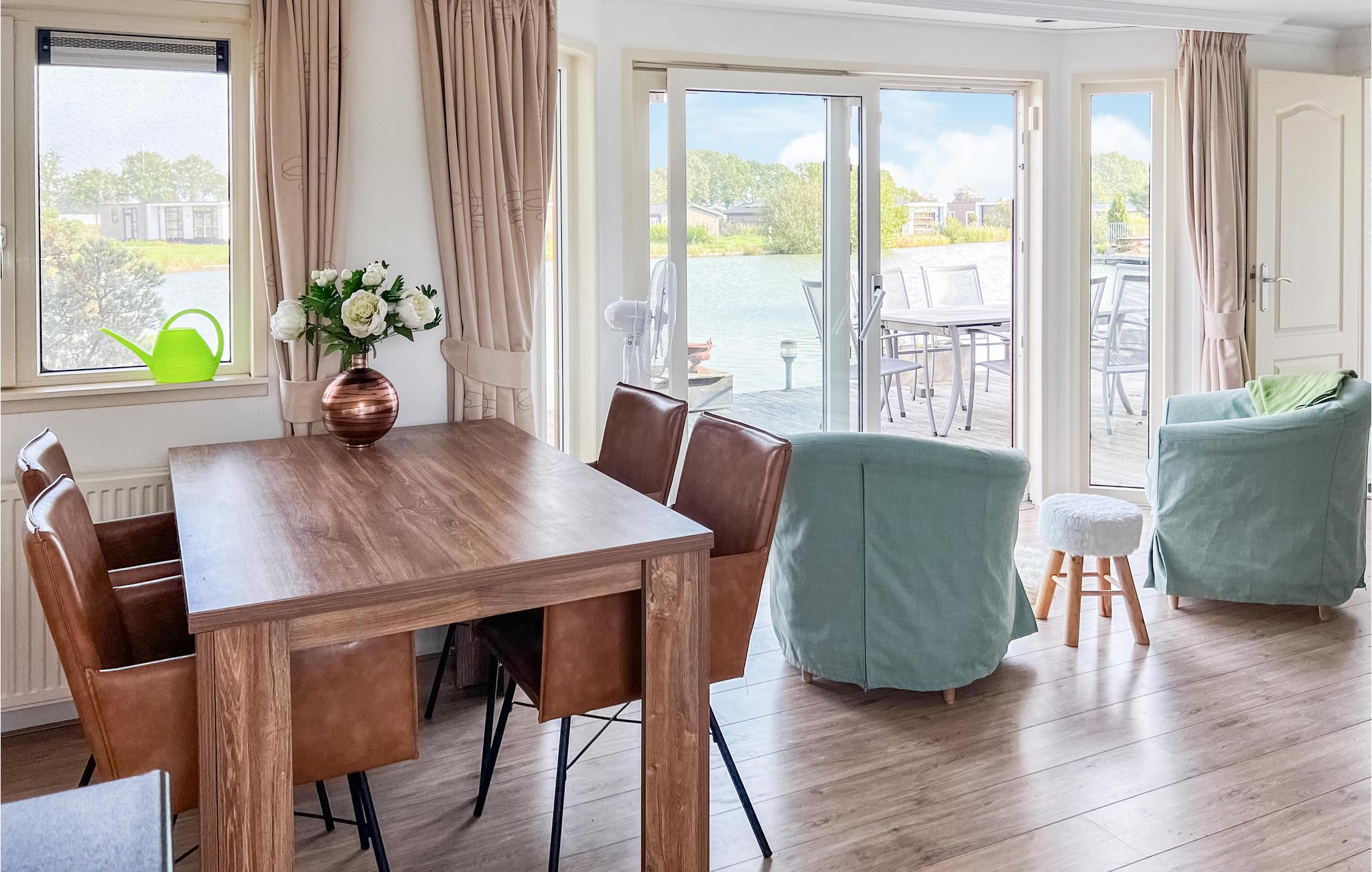 Fra både plæne og terrasse er der en skøn udsigt over søen. Omkring huset er der forskellige siddegrupper, hvor i kan sidde og slappe af i solen. Huset er i et plan. Huset ligger i et roligt lille ferieanlæg. Herfra er der ikke langt til den hyggelige by Breda, hvor I kan sejle gennem centrum eller ligge i solen på bredden af søen Galderse Meren.
