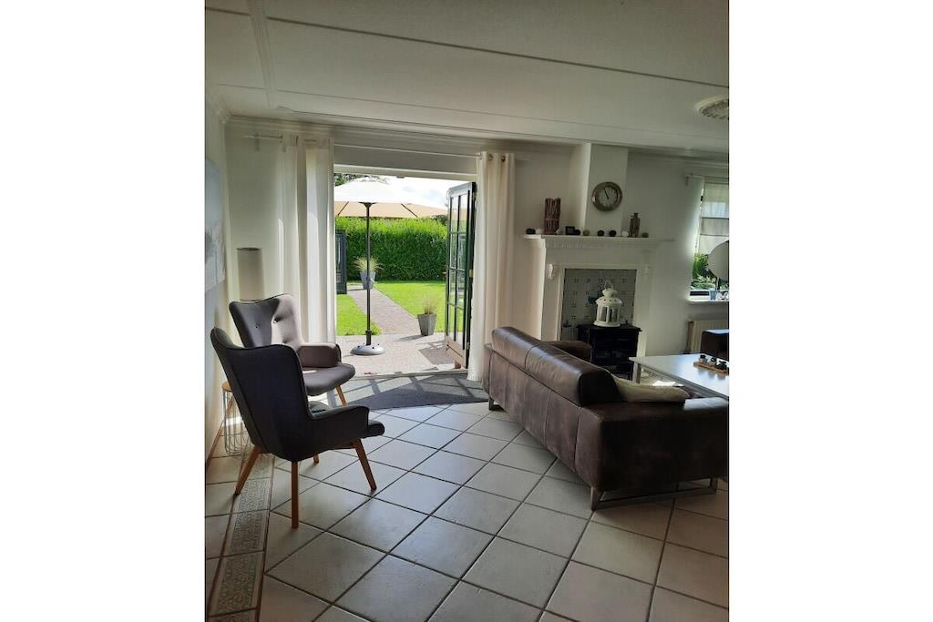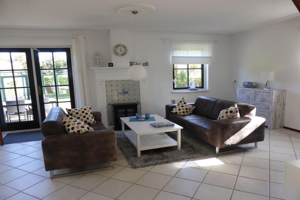 Stueetage: (Stue(Fjernsyn, kakkelovn, DVD-afspiller, CD-afspiller, varme), Køkken(tekøkken, spisebord, elkedel, brødrister, komfur, kaffemaskine, ovn, mikrobølgeovn, opvaskemaskine , køleskab, fryser, varme), badeværelse(toilet, håndvask, varme), pulterkammer(, vaskemaskine, tørreskab)) På 1. etage: (soveværelse(, dobbeltseng), soveværelse(, enkeltseng, enkeltseng, enkeltseng), badeværelse(, toilet, badekar, bruser, håndvask, varme)) , , , Internetadgang, vaskemaskine, varme, terrasse(, havemøbler, solstole), terrasse(, havemøbler, solstole), trappegitter, tørreskab,