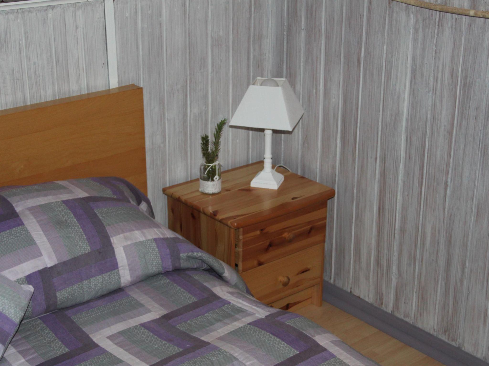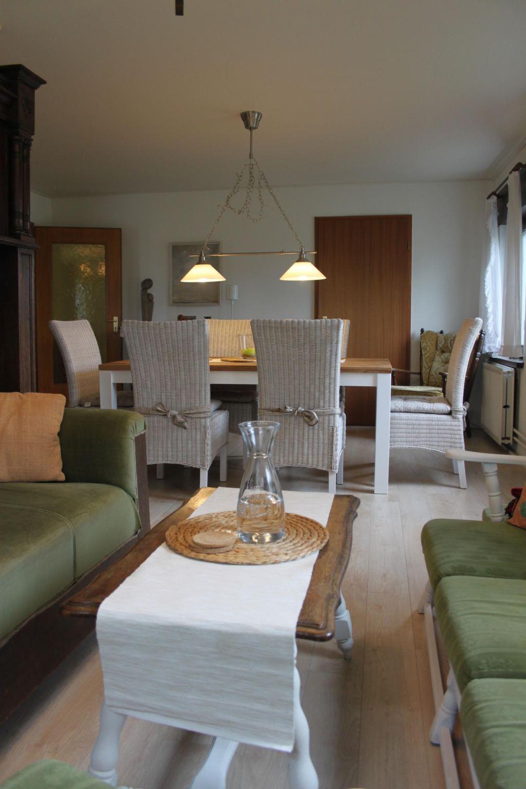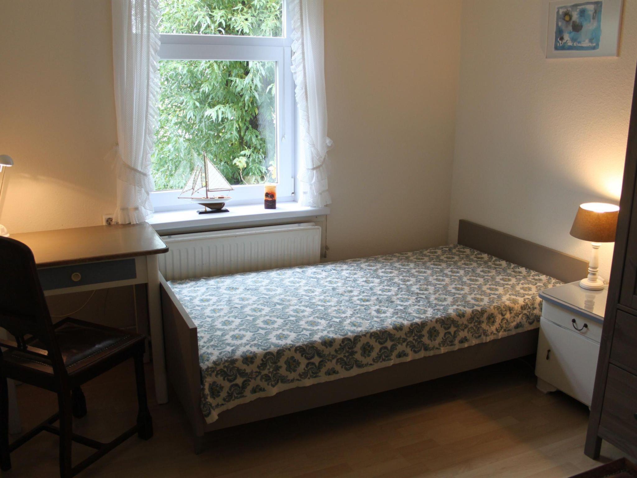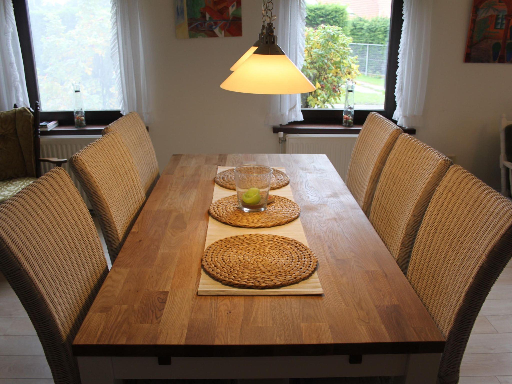 The four guest rooms offer seven beds. Downstairs on the ground floor there is a single bedroom with a 90 cm wide bed, a desk and a wardrobe. There is also a double bedroom with a 1.80 cm wide double bed and wardrobe. Both rooms lead off the living room. Two further bedrooms are located in the attic with sloping ceilings. In one bedroom there is a double bed measuring 2x2 metres and in the other bedroom there are two single beds, each 90 cm wide, and a desk. Both bedrooms have shelves integrated into the sloping ceilings. There is also a guest WC in the attic. THE ROOF FLOOR CAN ONLY BE ACCESSED BY A NARROW STAIRCASE (not a wide staircase - not suitable for older people). On the ground floor there are the two bedrooms, the living room, a bathroom and the eat-in kitchen. There is a dining table in the living room as well as in the eat-in kitchen. In the living room there is a cosy seating area with a cable TV and a DVD player. In addition to the seating area, the kitchen contains a modern kitchenette with oven, hob, fridge, dishwasher. Coffee machine, toaster. There is also a radio with CD player. In addition to the guest WC, the house has two bathrooms. One bathroom with shower, bath, washbasin, sauna and WC is on the ground floor. There is also an outdoor bathroom with shower, washbasin and WC (also on the ground floor, but accessible from the terrace), the indoor bathroom has just been completely renovated (January 2021) and now has direct through/access to the sauna. Modern tiles and bathroom furniture now round off our little wellness oasis. Don't forget your bathrobes! The outdoor bathroom has also been given a new look. Photos to follow.