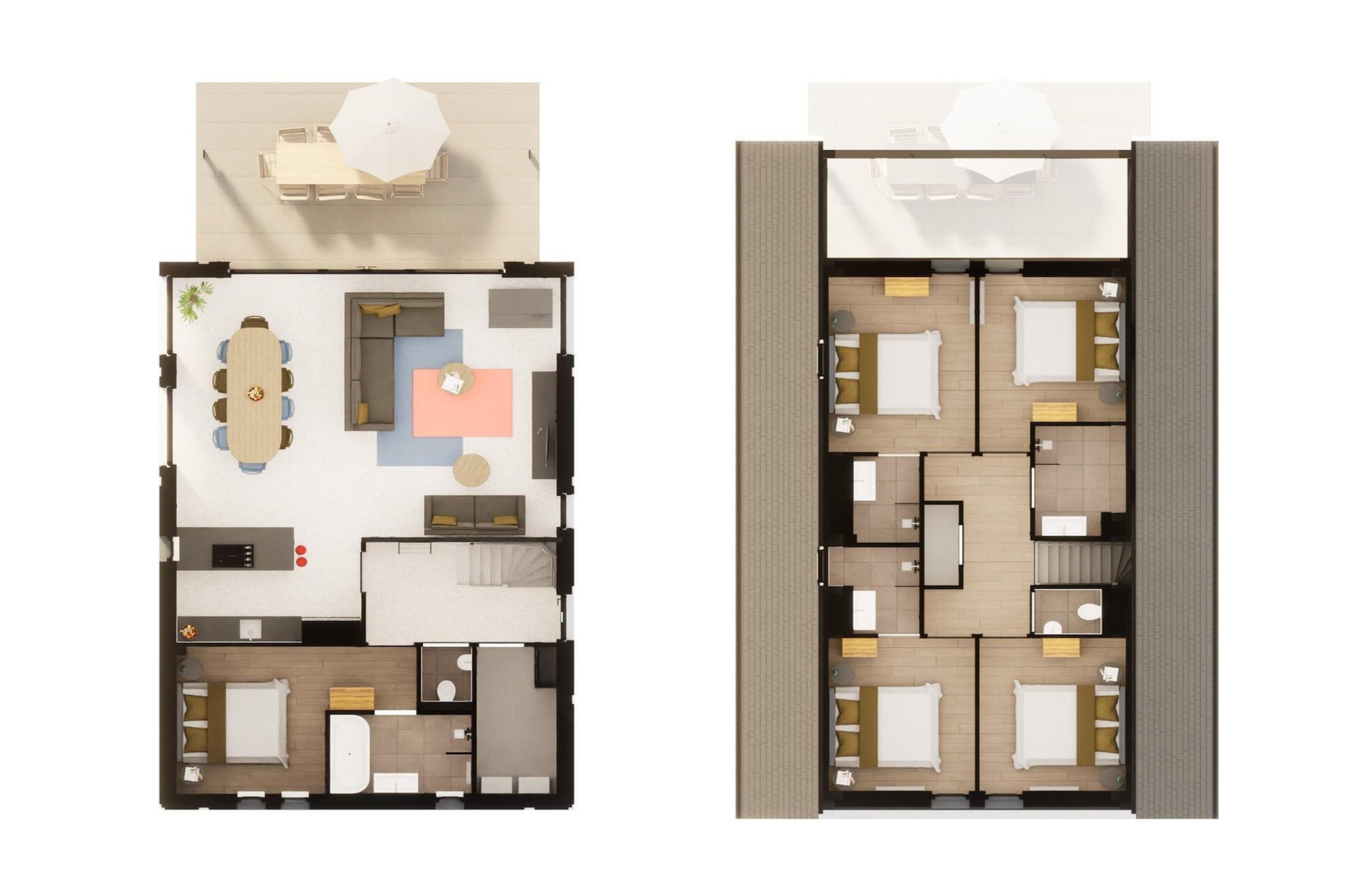 Stueetage: (entre(toilet), Stue(Fjernsyn(Smart-TV), sofahjørne), åbent køkken(kogeplade(Komfur med fire kogeplader, induktion), kaffemaskine(kopper), combi-mikroovn, opvaskemaskine , køle-fryseskab), Soveværelse med badeværelse(dobbeltseng eller 2 enkeltsenge Senge, badekar, bruser, håndvask, toilet)) På 1. etage: (soveværelse(dobbeltseng eller 2 enkeltsenge Senge), soveværelse(dobbeltseng eller 2 enkeltsenge Senge), Soveværelse med badeværelse(dobbeltseng eller 2 enkeltsenge Senge, bruser(Walk-in-bruser), håndvask), Soveværelse med badeværelse(dobbeltseng eller 2 enkeltsenge Senge, bruser(Walk-in-bruser), håndvask), badeværelse(bruser(Walk-in-bruser), håndvask, toilet), Repos(toilet)) terrasse, have(indhegnet), havemøbler, parkering, swimmingpool(deles med andre gæster, udendørs, indendørs), Ladestation til el-biler