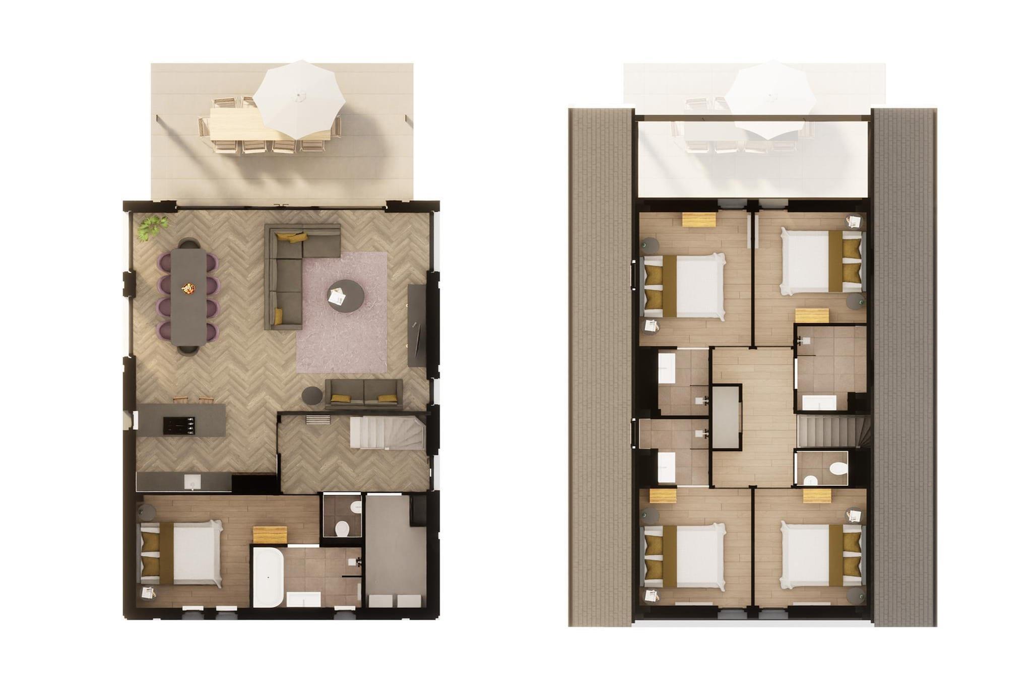 Stueetage: (entre(toilet), Stue(Fjernsyn(Smart-TV), sofahjørne), åbent køkken(kogeplade(Komfur med fire kogeplader, induktion), kaffemaskine(kopper), combi-mikroovn, opvaskemaskine , køle-fryseskab), Soveværelse med badeværelse(dobbeltseng eller 2 enkeltsenge Senge, badekar, bruser, håndvask, toilet)) På 1. etage: (soveværelse(dobbeltseng eller 2 enkeltsenge Senge), soveværelse(dobbeltseng eller 2 enkeltsenge Senge), Soveværelse med badeværelse(dobbeltseng eller 2 enkeltsenge Senge, Fjernsyn(Smart-TV), bruser, håndvask), Soveværelse med badeværelse(dobbeltseng eller 2 enkeltsenge Senge, bruser, håndvask), badeværelse(bruser, håndvask, toilet), Repos(toilet)) terrasse, have(delvist indhegnet), havemøbler, parkering, swimmingpool(deles med andre gæster, udendørs, indendørs), Ladestation til el-biler