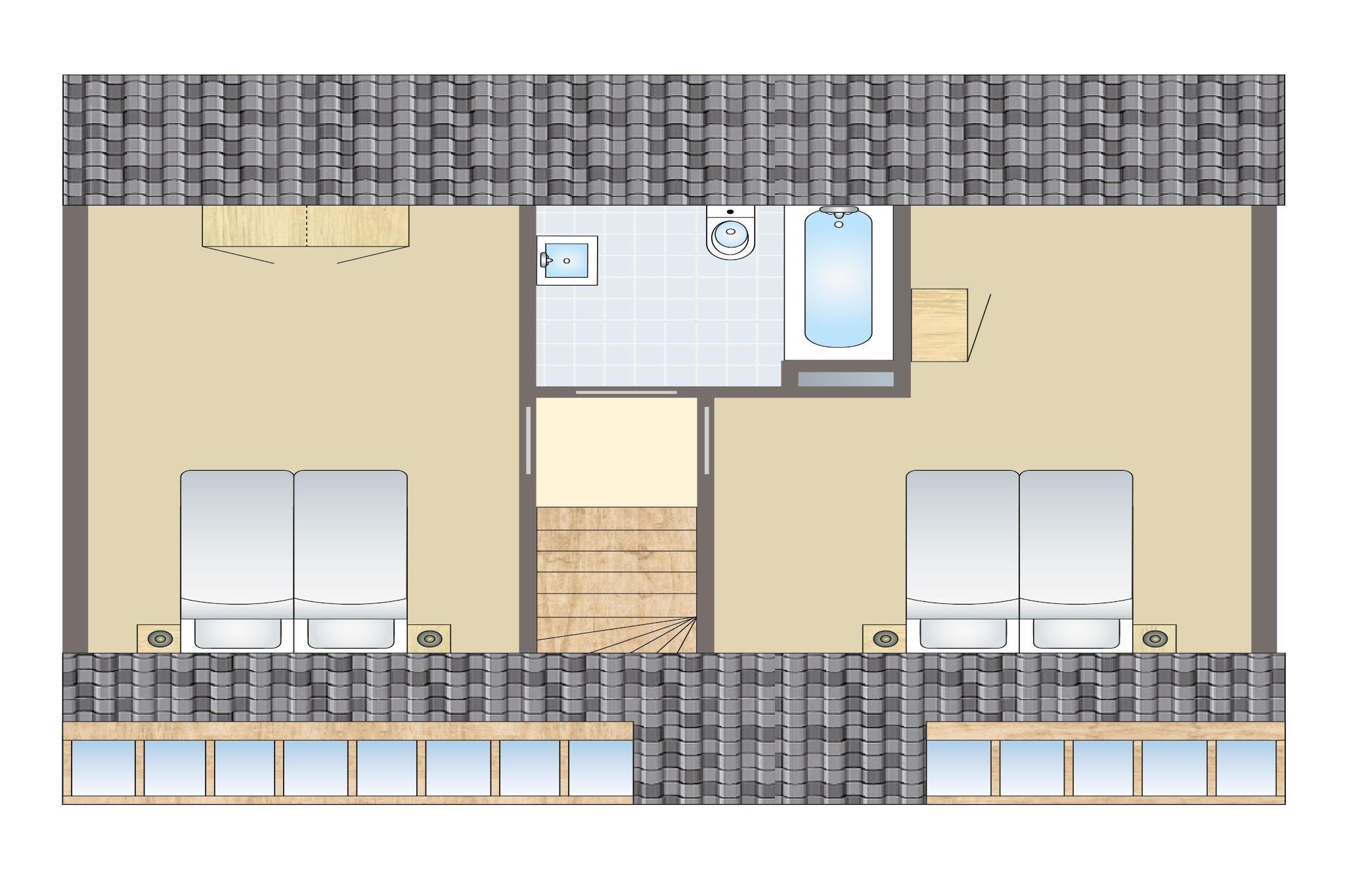 Stueetage: (entre(toilet), Stue(Fjernsyn), åbent køkken(elkedel, komfur(gas), kaffemaskine(kaffetragt, kaffepude), ovn, mikrobølgeovn, køle-fryseskab), Soveværelse med badeværelse(dobbeltseng eller 2 enkeltsenge Senge, Fjernsyn, bruser, håndvask), pulterkammer) På 1. etage: (soveværelse(dobbeltseng eller 2 enkeltsenge Senge), soveværelse(dobbeltseng eller 2 enkeltsenge Senge), badeværelse(badekar med bruser, håndvask, toilet), Repos) terrasse, have, havemøbler, swimmingpool(deles med andre gæster, overdækket)