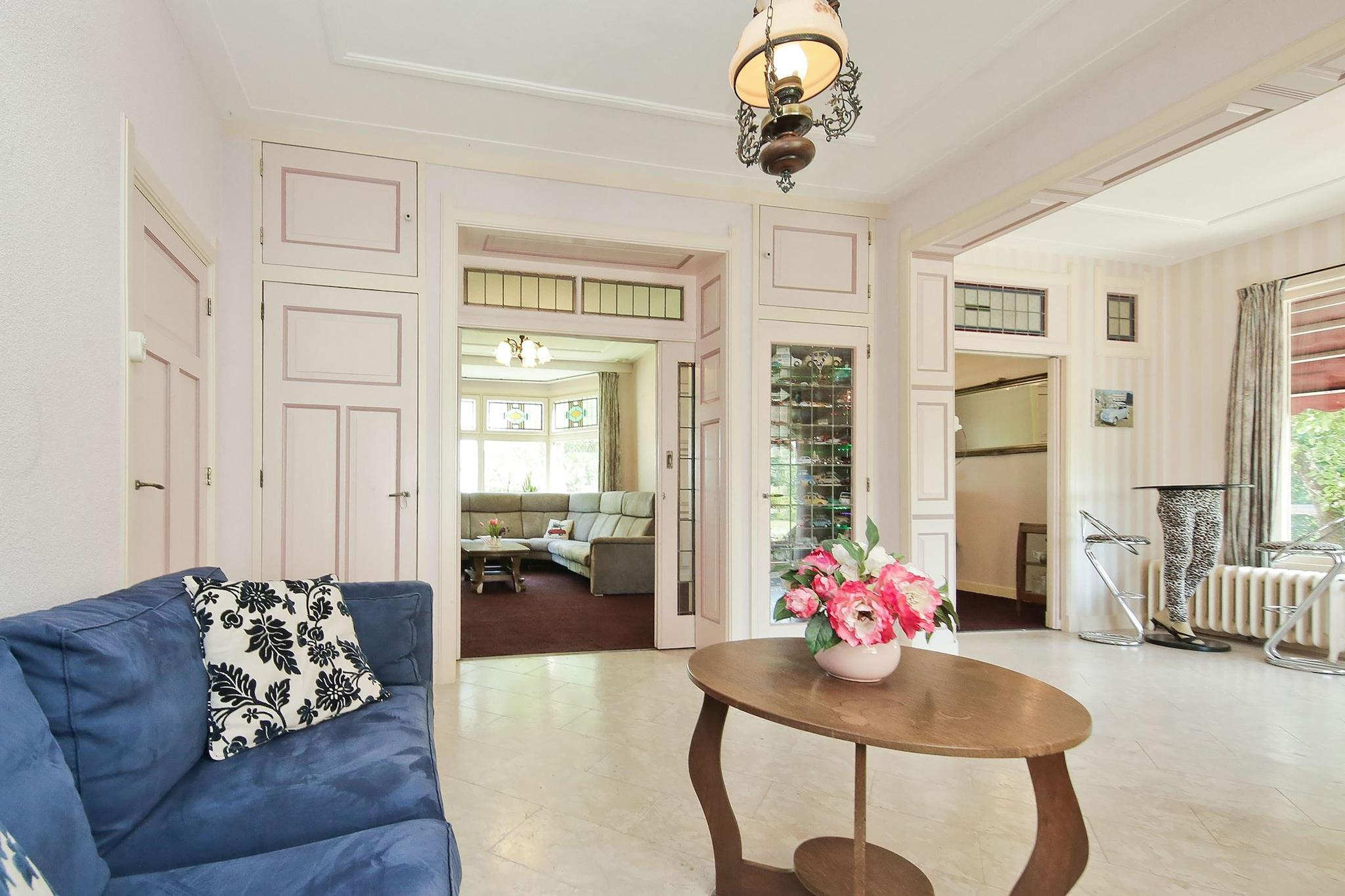 Dette rummelige feriehus nær Amsterdam og Haarlem tilbyder et fredeligt tilflugtssted for familier eller grupper. Med fem soveværelser fordelt på tre etager, to hyggelige opholdsområder og et fuldt udstyret køkken med både filter- og pad-kaffemaskiner, blander det rustik charme med moderne bekvemmelighed. Gæsterne kan nyde et privat wellness-område med brusekabine og sauna, en solrig have med panoramaudsigt og gennemtænkte faciliteter såsom vaskemaskine, tørretumbler og høj stol. Boligens store uderum omfatter terrasse, brændeovn og legeområder, perfekt til både afslapning og familiehygge. Centralvarme og gratis Wi-Fi sikrer komfort året rundt, mens privat parkering gør dit ophold lettere. I nærheden kan du udforske de kulturelle skatte i Amsterdam (20 km) og Haarlem (11 km), eller slappe af på strandene i Zandvoort og Bloemendaal aan Zee. Besøg Frans Hals-museet, slentre gennem gader med boutiquer, eller nyd en kanalrundfart. Til spisning kan du nyde det hollandske køkken på De Jonge Dikkert eller nyde bøffer på Loetje Overveen. Med shopping kun 5 km væk og Schiphol Lufthavn kun 10 km fra dit dørtrin, er denne villa en perfekt base for dit nordhollandske eventyr.