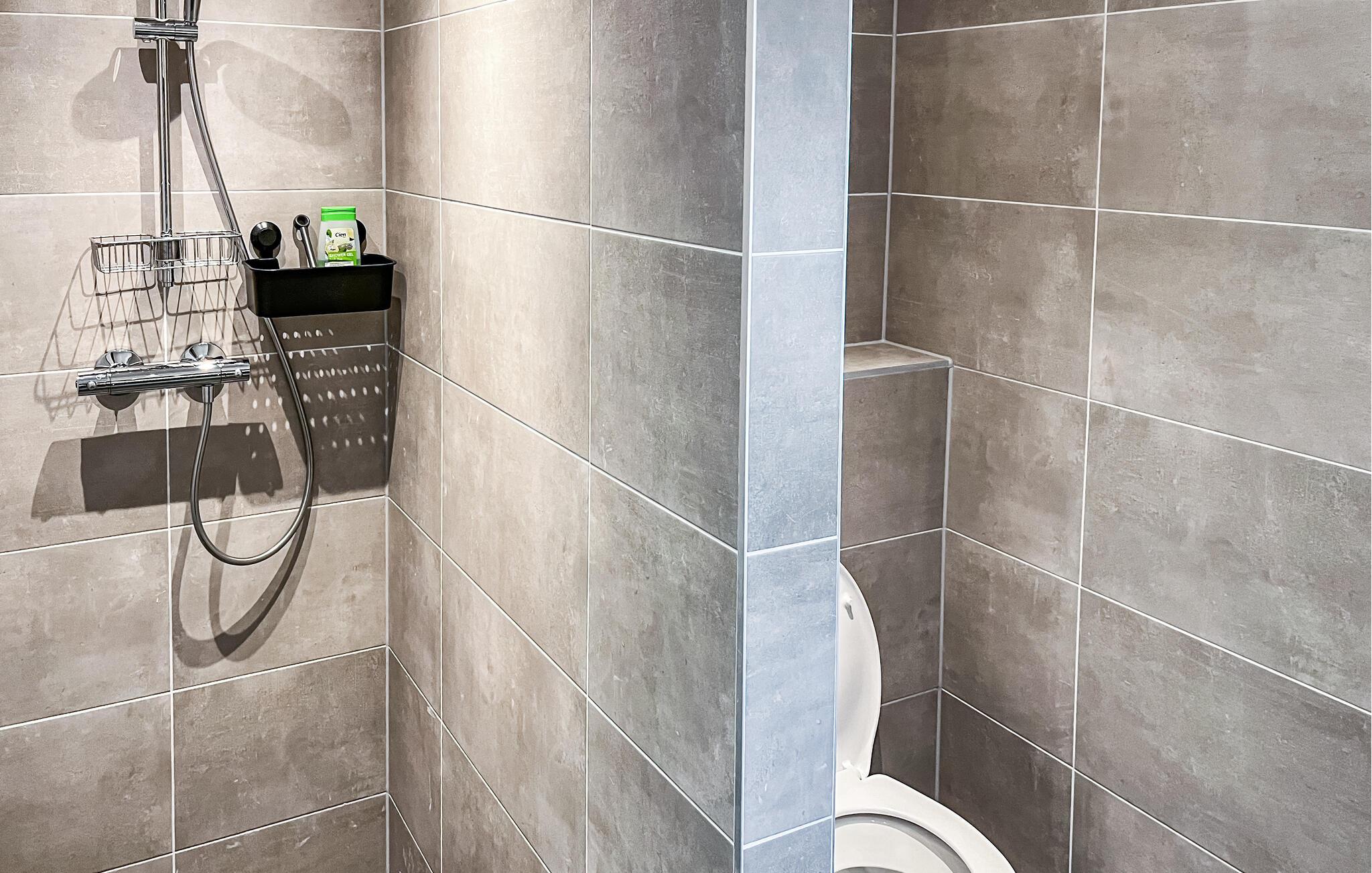 Badeværelse (nr. 1) - WC. Varmt og koldt vand. Bruser