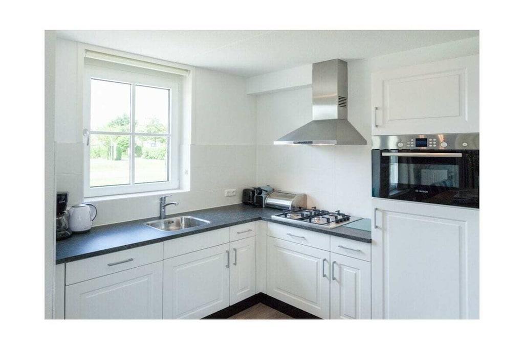 Denne ferievilla har en central indgang, der giver adgang til stuen med en rummelig opholdsstue og spiseplads samt et åbent køkken. Soveværelset ligger i stueetagen og har direkte adgang til badeværelset med håndvask og bruser. Et separat gæstetoilet og opbevaringsrum er også placeret i stueetagen. Ovenpå er der tre soveværelser og et centralt beliggende badeværelse med bruser eller badekar, håndvask og toilet. Hvert soveværelse har to enkeltsenge, som vil være redt op ved din ankomst. Der er to parkeringspladser til rådighed ved din ferievilla.