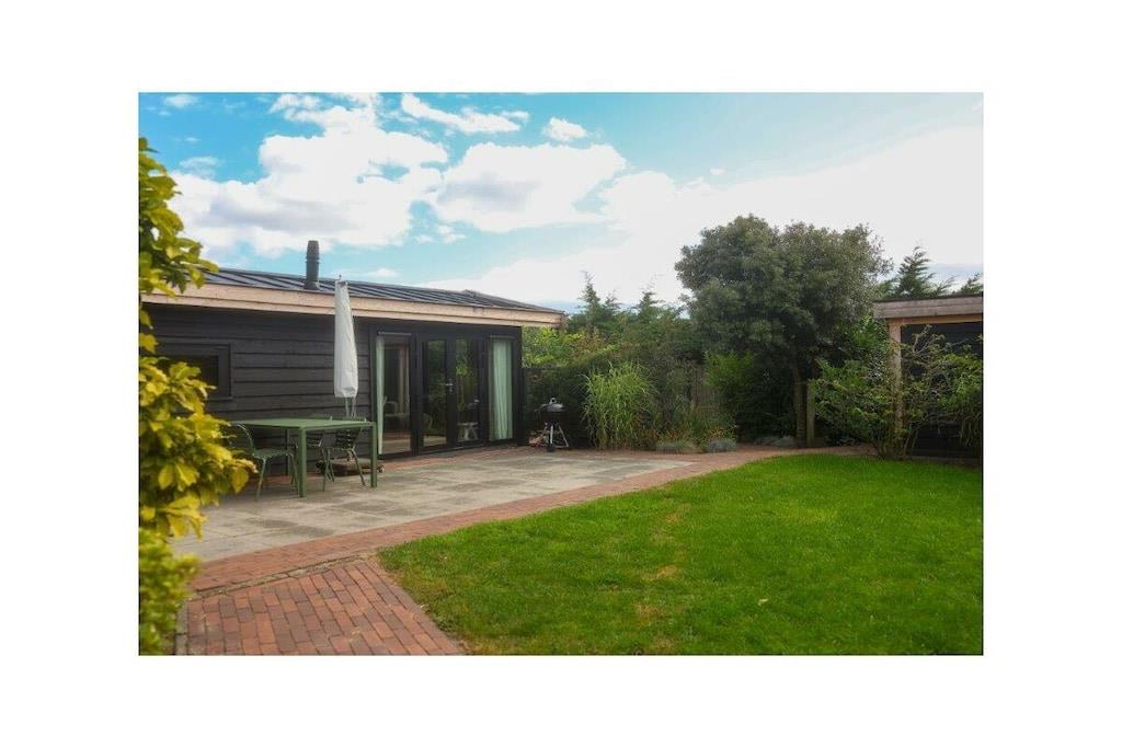 Stueetage: (Stue(, Fjernsyn, kakkelovn, radio), Køkken(kakkelovn, komfur, ovn, opvaskemaskine , køleskab), soveværelse(, , dobbeltseng, Fjernsyn), badeværelse(, toilet, bruser, håndvask)) , , , Internetadgang, Internetadgang, tørretumbler, vaskemaskine, varme, terrasse(, Græsplæne, hottub, havemøbler, Haveskur), parkering, tørreskab