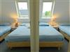 The rooms are spread over the villa's two floors. On the ground floor is the hall with a toilet, a living room with a semi-open kitchen and a storage room. The living room has a seating area, a TV and a DVD player. Wi-Fi internet is available for a fee. The kitchen is equipped with a gas cooker with extractor hood, a combination microwave oven, a fridge freezer, a dishwasher, a coffee machine, an electric kettle and much more. The storage room is accessible from the kitchen where you will find the washing machine, dryer and extra fridge. Upstairs are a large bedroom and two smaller bedrooms. Each room has two single beds (0.90m x 2.00m) and a central heating cupboard. In addition, here is the bathroom with bath, separate shower and toilet. Each cottage has underfloor heating on the ground floor and radiators on the first floor.
