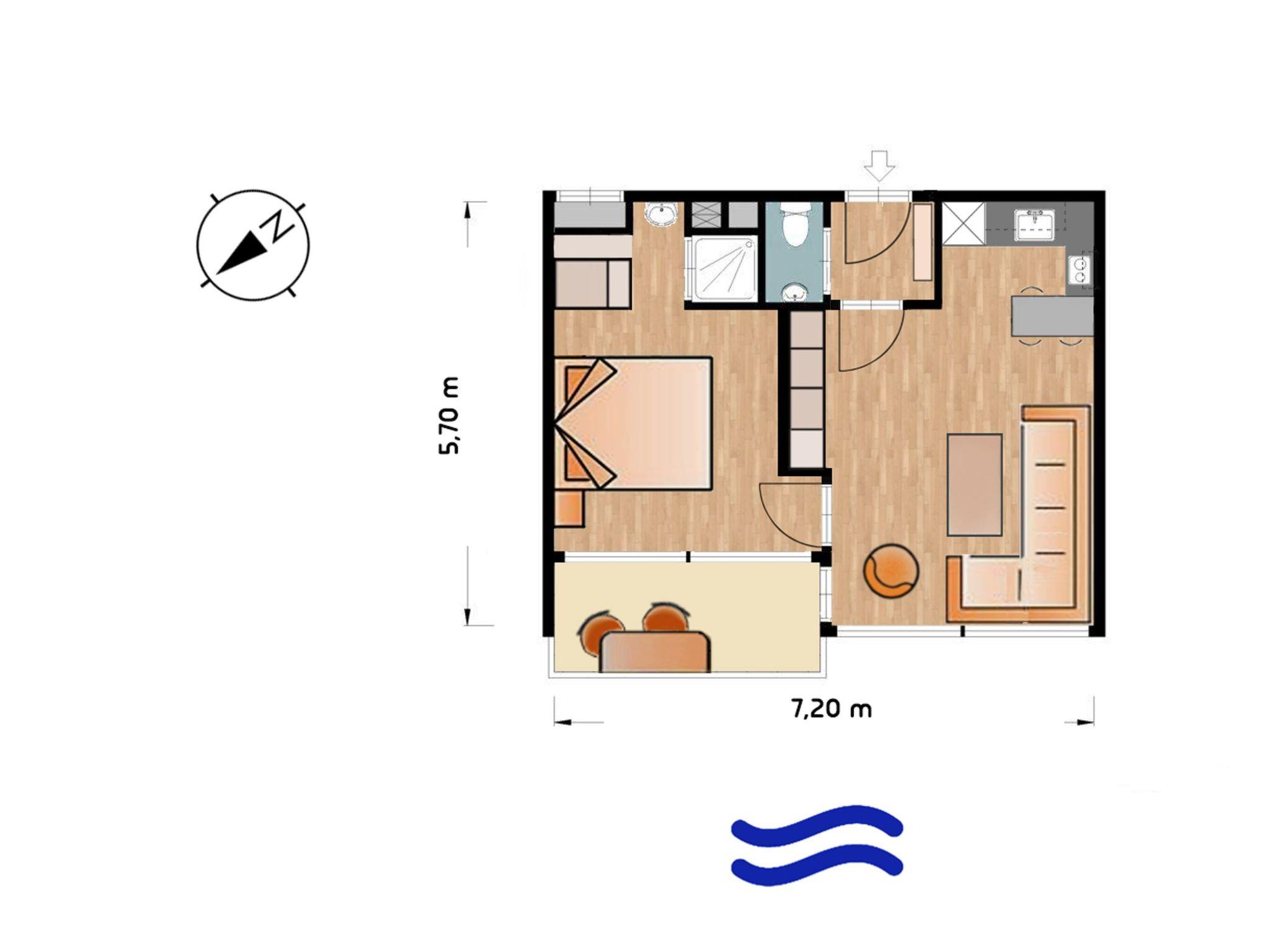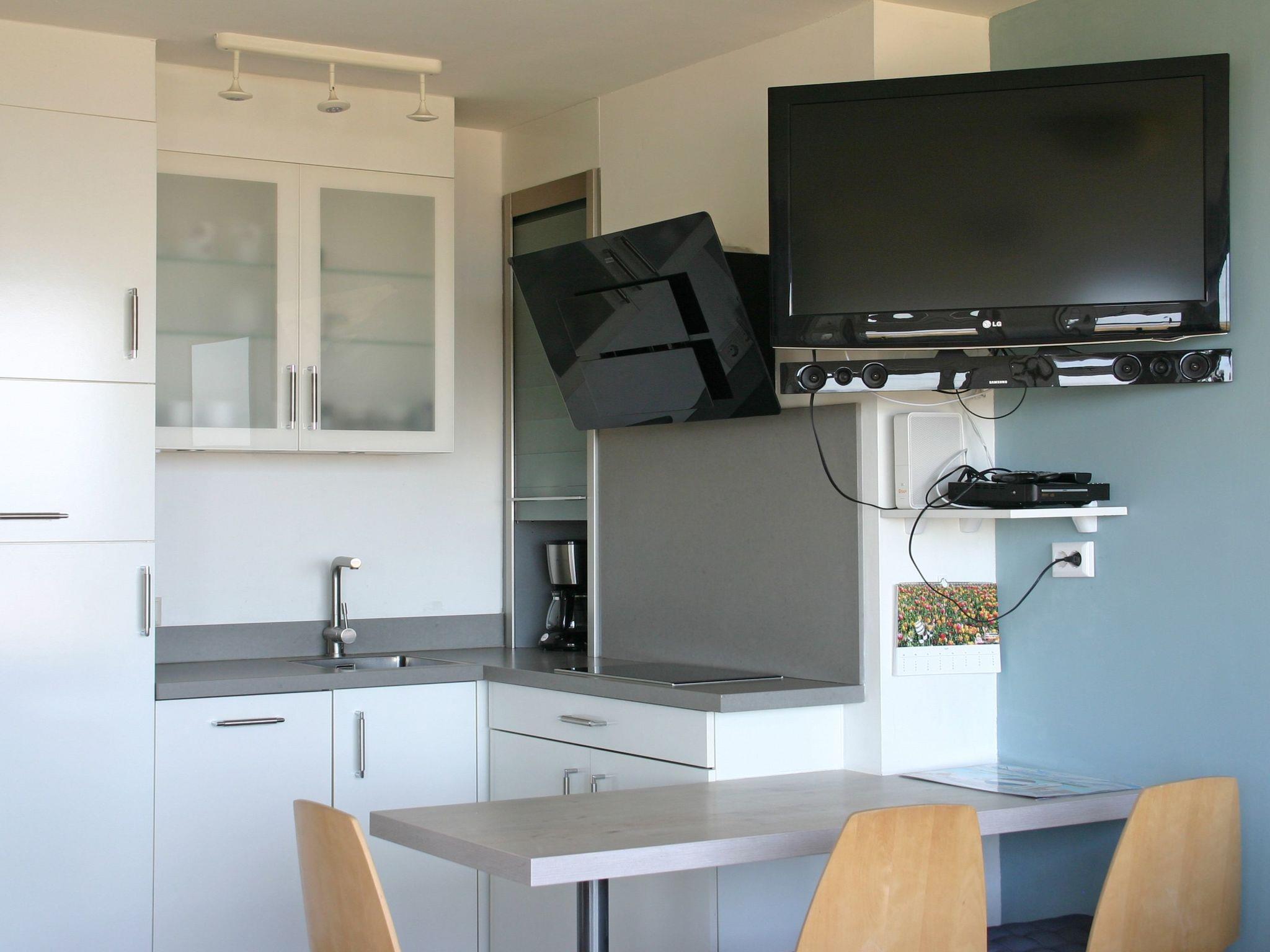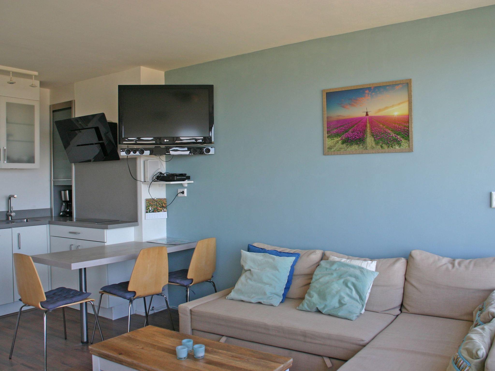 The beautiful 45 square metre flat is warm and modern. It is located on the 5th floor and is easily accessible by lift. The bright living room with its large window front has a modern corner sofa bed, a large flat-screen HDMI TV with a German channel package and a Wi-Fi internet connection.from the living room and the adjoining balcony you have a breathtaking and undisturbed view of the sea and its magnificent sunsets! The binoculars provided will give you a view you will never forget. The new and ultra-modern kitchen with dishwasher, combi-microwave, induction hob with extractor bonnet and large fridge/freezer offers the comfort that gives your holiday that little bit extra. A nice meal after a wonderful day at the beach can be conjured up in no time at all on the adjoining dining table, while the bedroom is furnished with a comfortable double bed and a spacious wardrobe. Here, too, there is a wonderful view of the North Sea and the extensive beach. There is also a washbasin with a door to a small bathroom with shower and toilet.