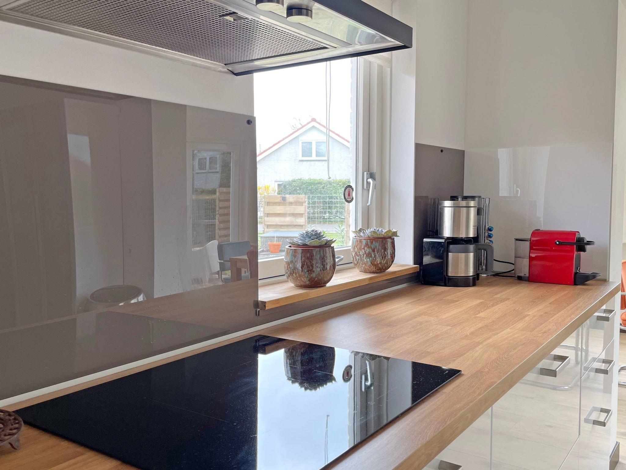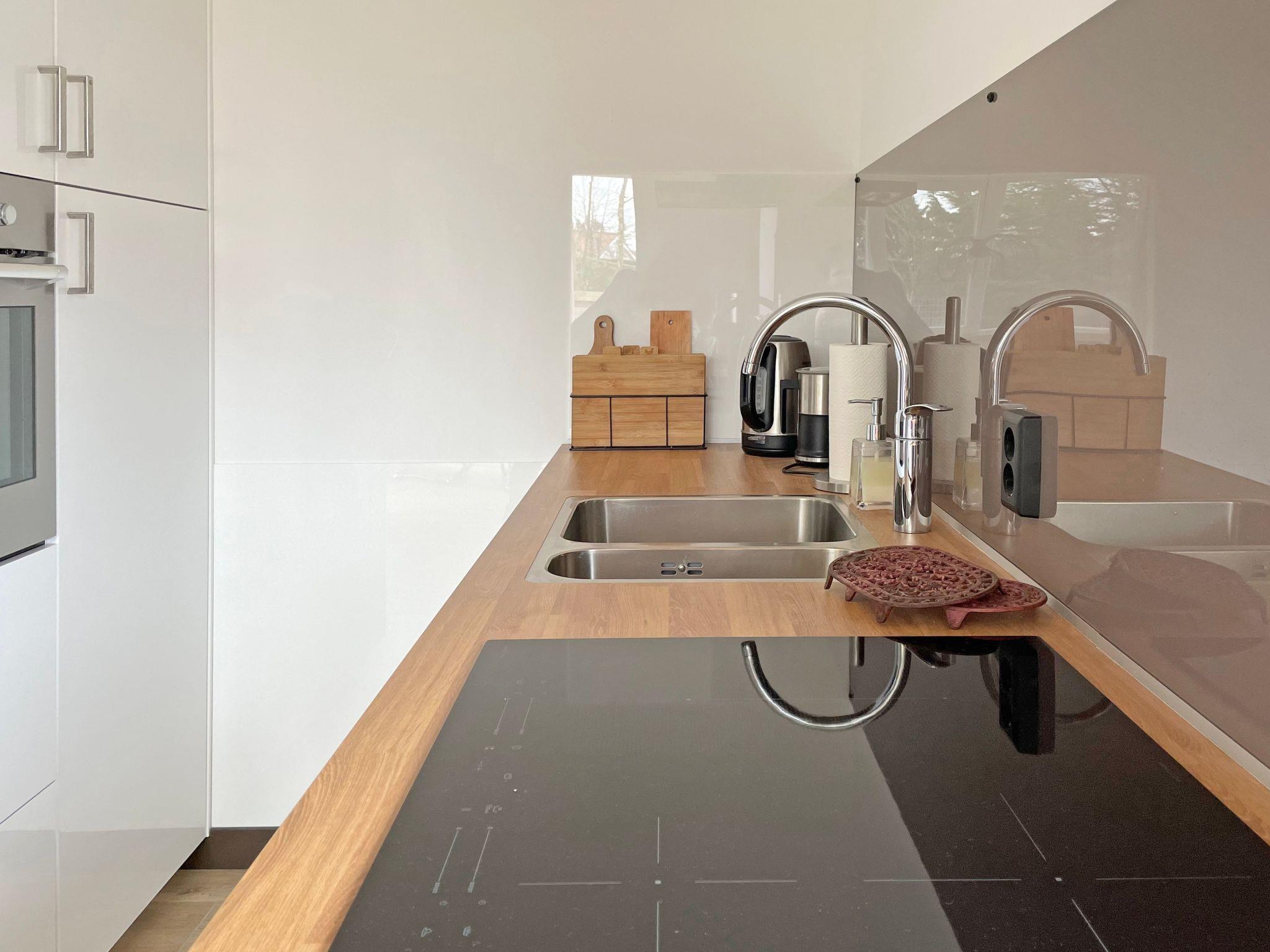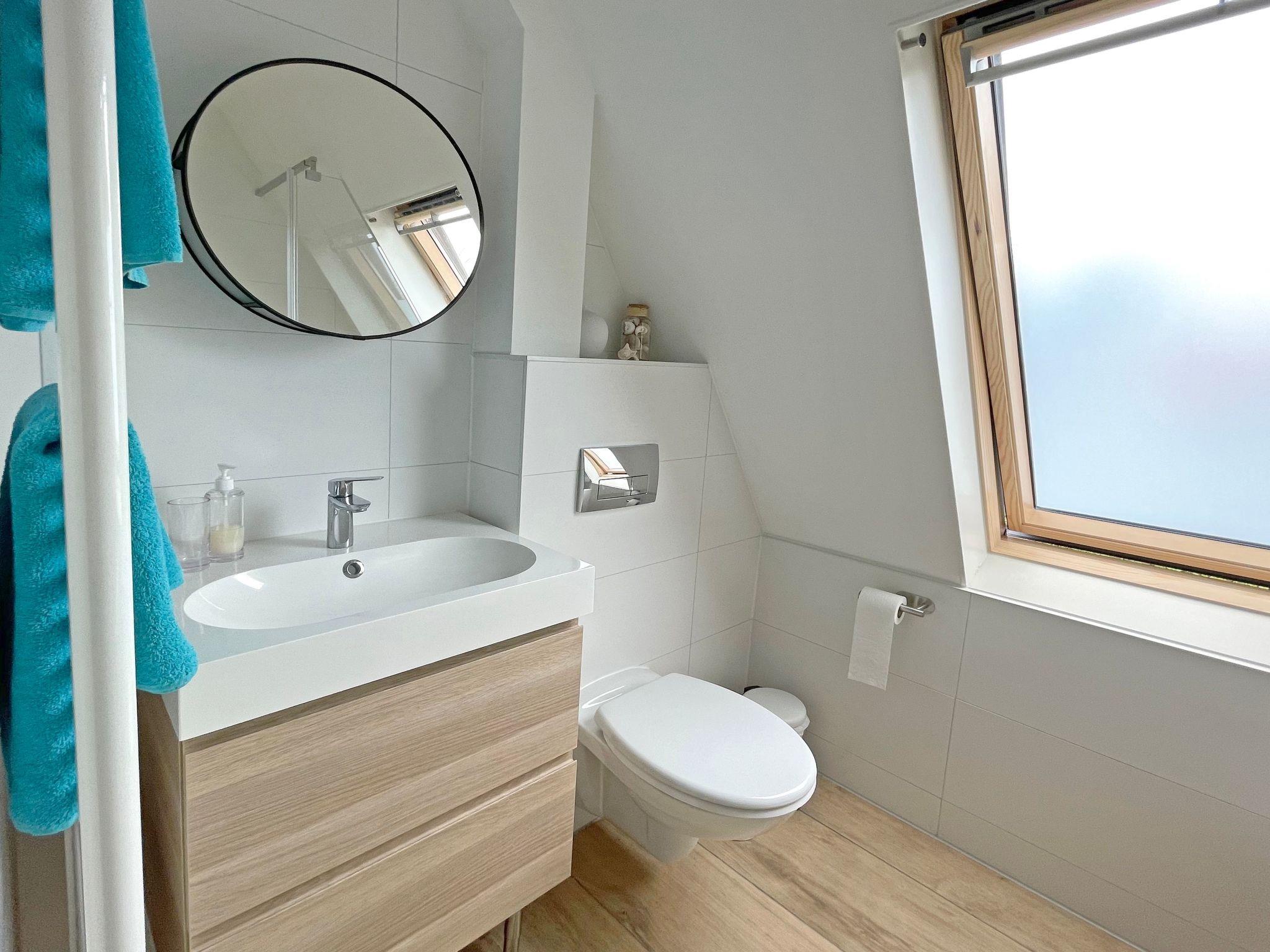 The kitchen is modernly equipped and has an oven with many options, a separate microwave, a dishwasher and a fridge with freezer compartment. There is a guest WC on the ground floor.