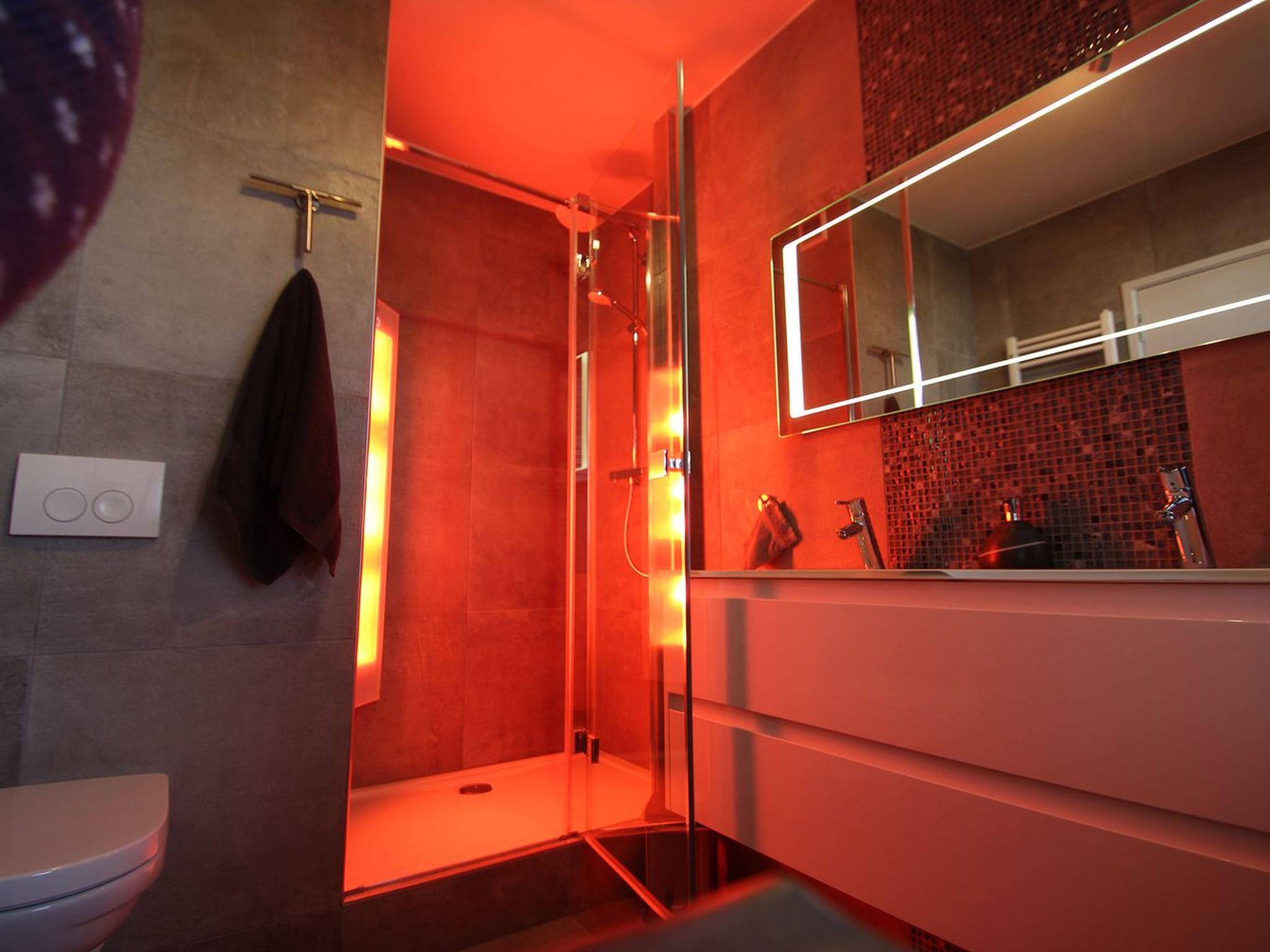 From the kitchen and living room, you can access a cosy and beautifully designed bedroom. The bathroom is also bright and modern and has a spacious shower. The pleasant laminate flooring gives the whole flat a very cosy flair.