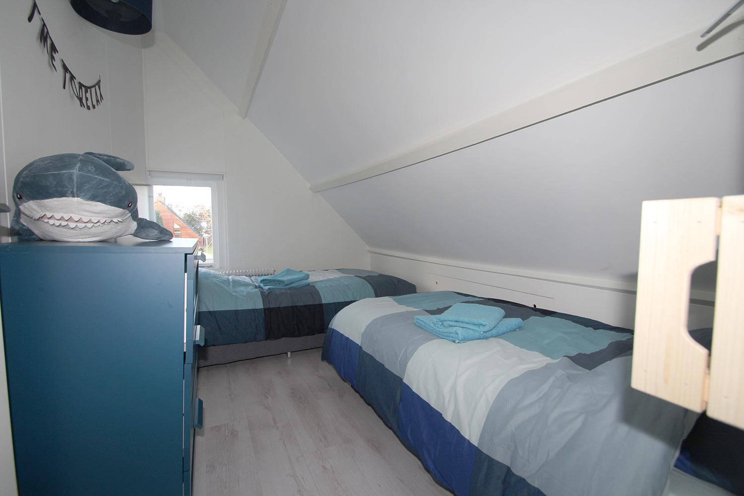 Eine offene Treppe führt in das Obergeschoss mit gemütlichen Schlafzimmern. Auf der obersten Etage gibt es zudem einen separaten Bereich mit einem Schlafsofa für eine Person.
