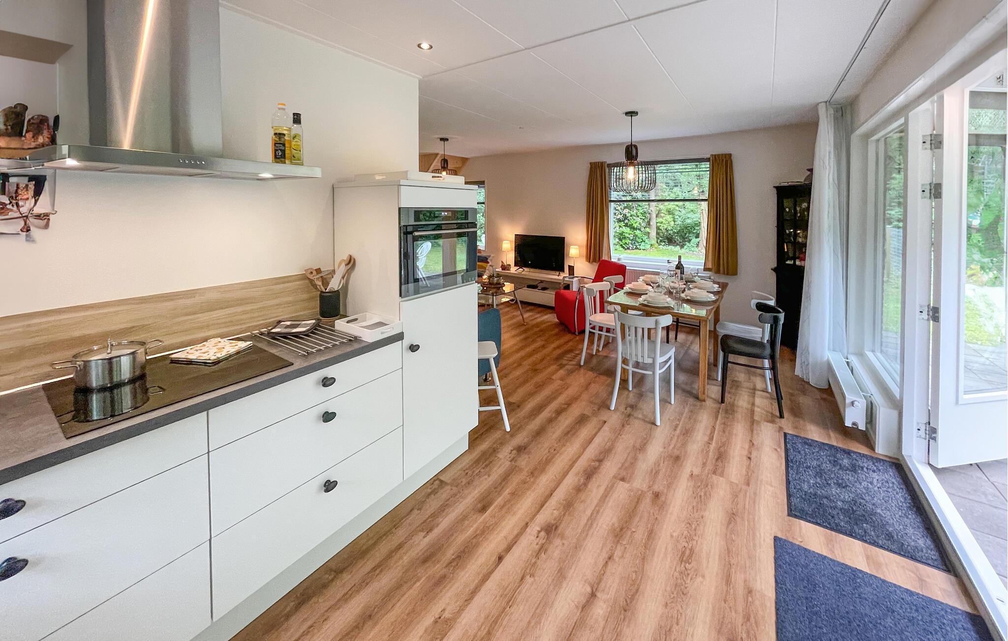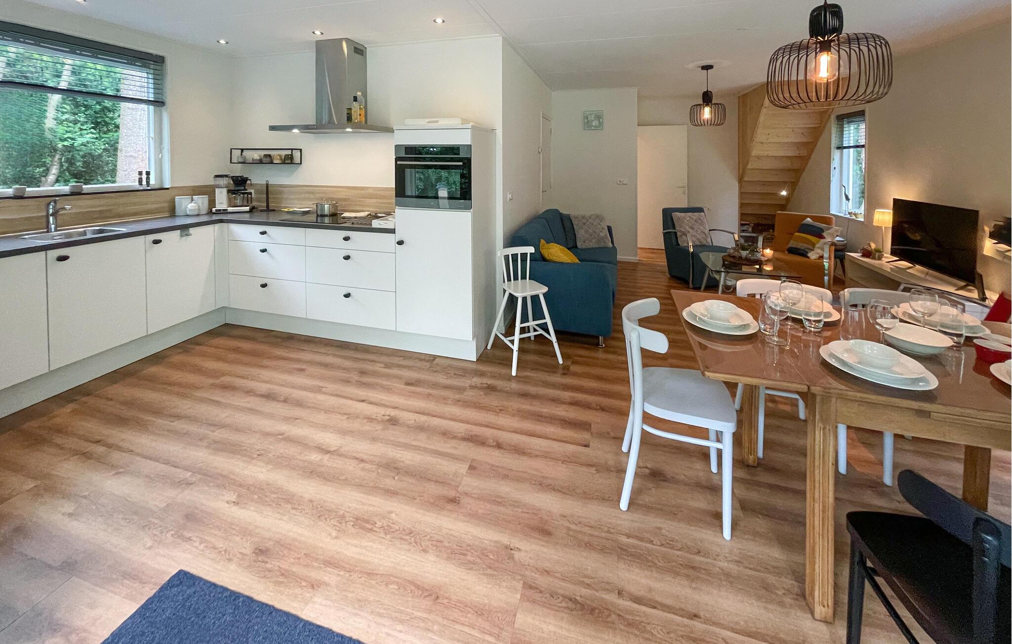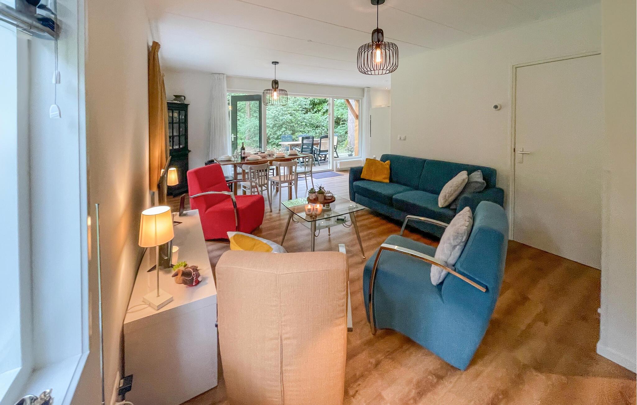 Huset venter sine gæster med en skøn beliggenhed til store naturoplevelser nær skoven. Brug den som en behagelig base for en dejlig pause med aktiviteter i området. Slå jer ned her efter jeres udflugter, nyd dagens måltider sammen med udsigt til det grønne og læg planer for de kommende dage, mens I slapper af i siddeområdet.