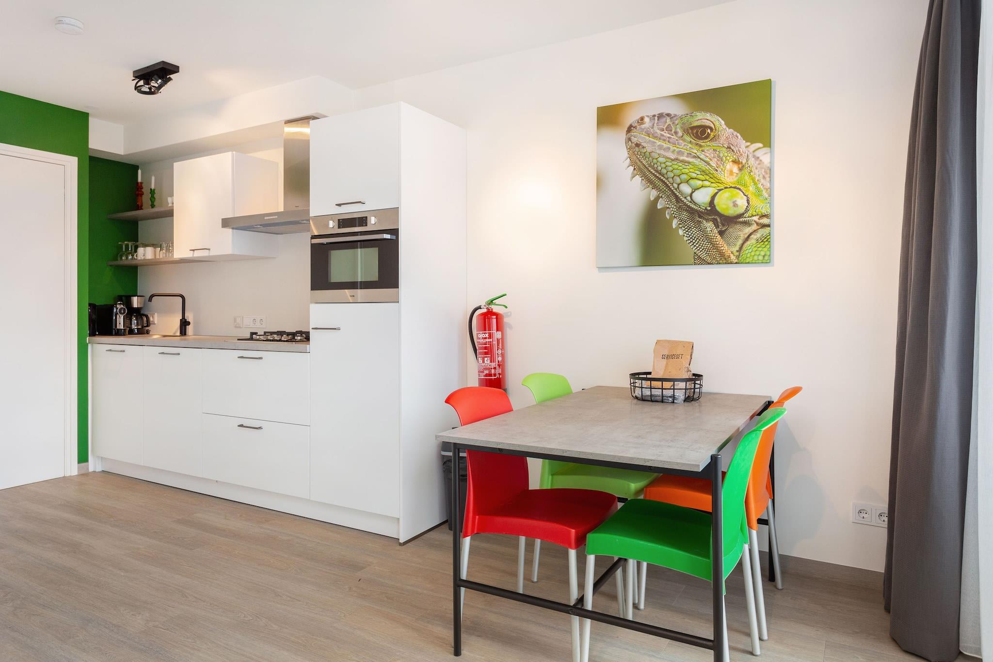 Du finder denne moderne og moderne lejlighed lige ved Sneekermeer. Indkvarteringen er beliggende i et naturreservat, et ideelt feriested for fredsøgende og naturelskere. Men du er også kommet til det rigtige sted for mere aktivitet. Du kan for eksempel leje en sloop, sup eller vandcykel. Kort sagt: alle ingredienser er til stede for både et fredeligt ophold og en pulserende vandsportsferie. Vil I komme og skabe minder sammen i denne smukke lejlighed? Denne lejlighed i stueetagen er moderne og elegant. I stuen er der et hyggeligt opholdsområde med sofa, to stole og fjernsyn. En Chromecast er tilsluttet fjernsynet, så du kan bruge WiFi under dit ophold. Der er ingen tilgængelig kanalpakke. I kan spise sammen ved spisebordet, og måltider kan tilberedes i det fuldt udstyrede køkken. Dette åbne køkken er udstyret med kogeplader, kombineret mikroovn, køleskab, opvaskemaskine, kaffemaskine (filter og Nespresso), elkedel og brødrister. Soveværelset er indrettet med dobbelt boxspring (160x200), natborde, garderobeskab og mørklægningsvindue. Der er også tænkt på de små: der er en foldbar barneseng (60x120 cm) og en høj stol. Ferielejlighedens moderne badeværelse er udstyret med bruseniche med glasvæg, toilet, badeværelsesmøbler med spejl og hårtørrer. Med en vestvendt beliggenhed er haven i denne lejlighed rigtig dejlig. Kan du se dig selv have en god morgenmad her? Eller nyde den smukke aftensol med en drink på liggestolene? Lejligheden har en rigtig god beliggenhed til at skifte mellem hvile og aktivitet under din ferie. Oplev for eksempel Friesland med en slup eller sejlbåd, som du kan leje i marinaen. Marinaen har også en hyggelig strandklub, hvor du kan nyde en drink, frokost eller middag. Ca 500 meter fra lejligheden