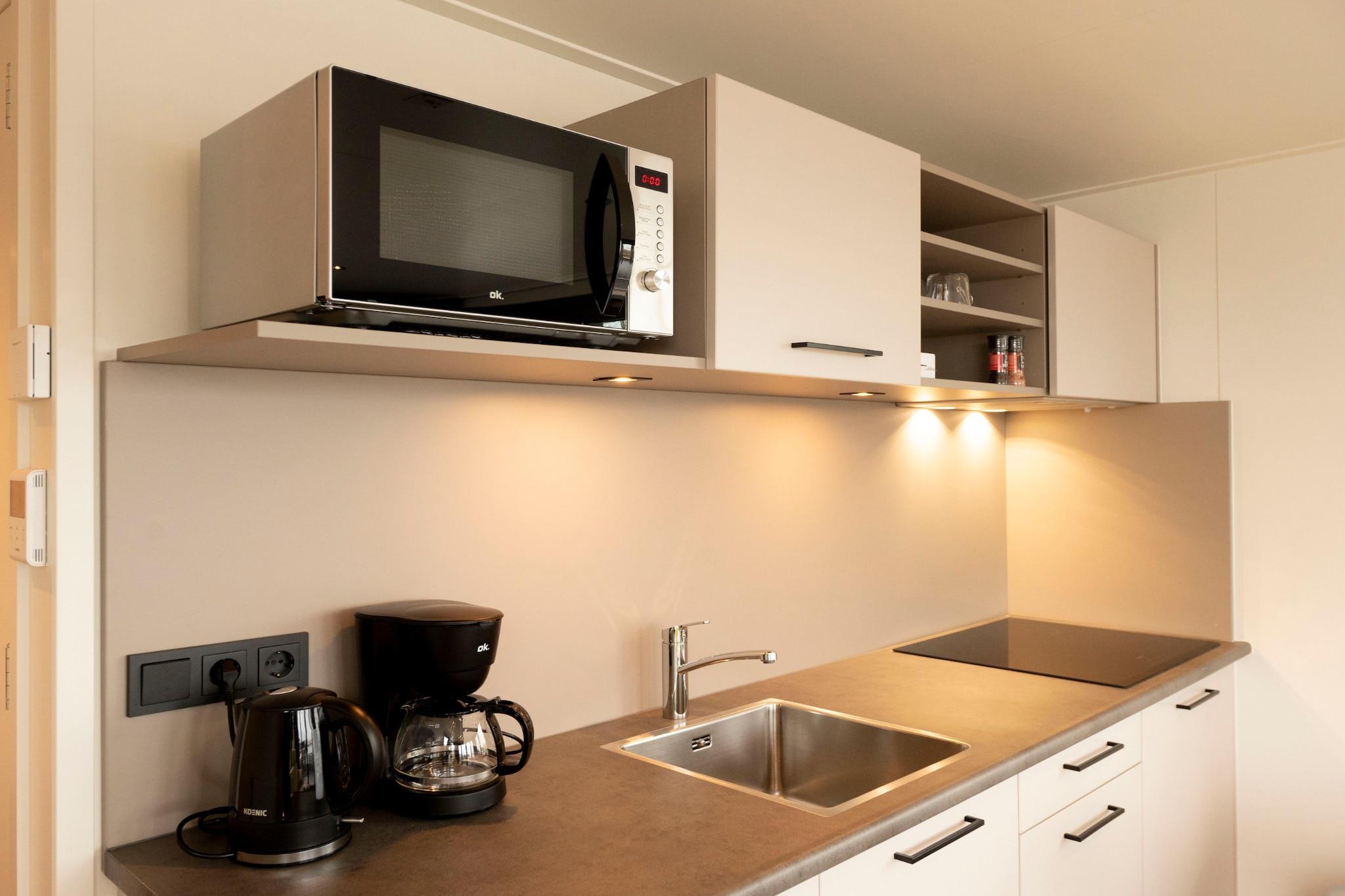 Stueetage: (Stue(Fjernsyn, sofahjørne), Køkken(kaffemaskine, combi-mikroovn, opvaskemaskine , køle-fryseskab), soveværelse(dobbeltseng), soveværelse(køjeseng), badeværelse(bruser, toilet, føntørrer), ) terrasse, parkering