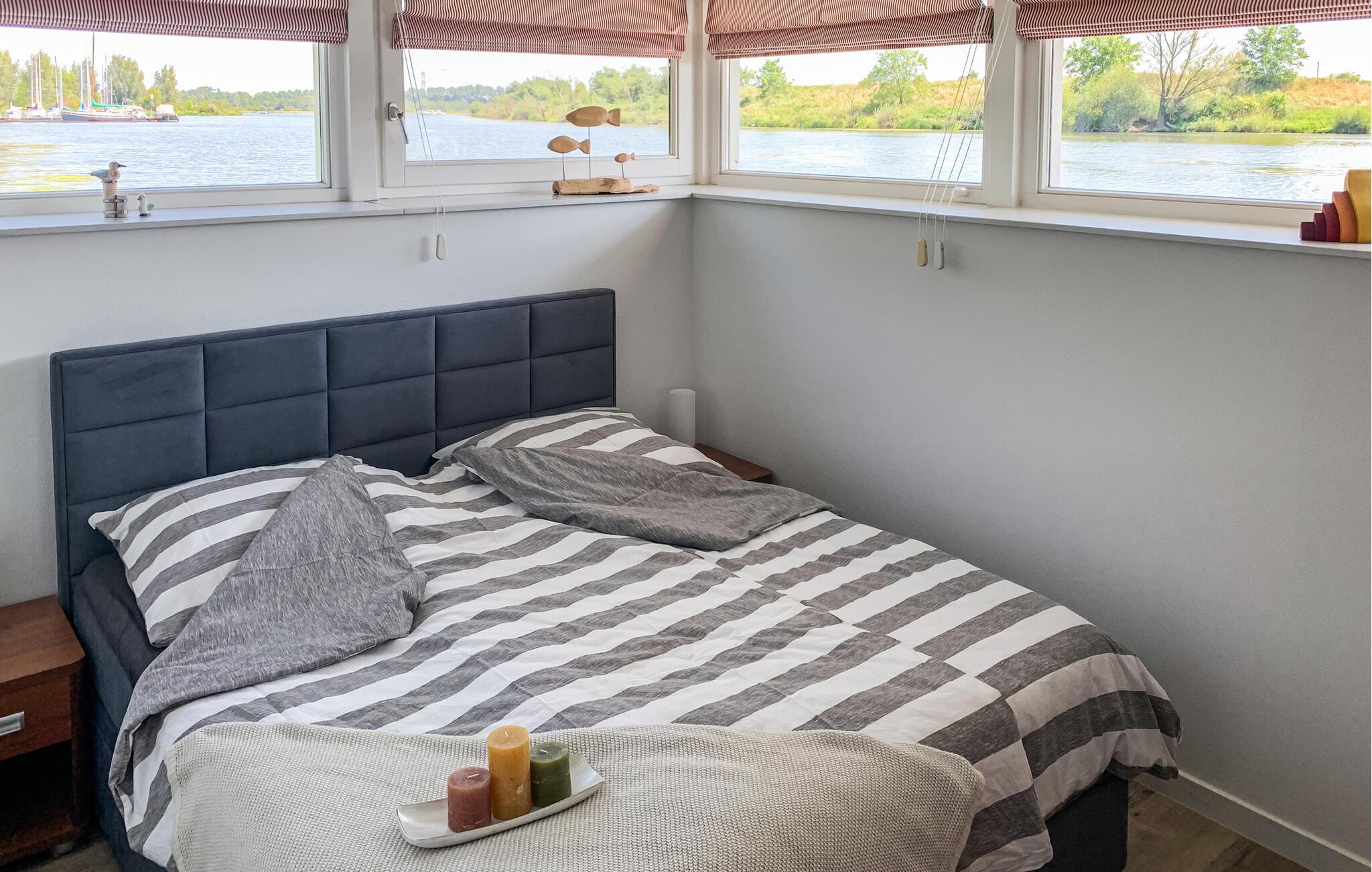I dette unikke feriehus, som er bygget i 2012, bor I bogstaveligt talt på vandet! Ferieboligen ligger på floden Maas, i et smukt, naturligt miljø. Luksushuset stiger og falder med de skiftende vandniveauer. Ved lavvande er huset på jorden. I kan nå feriehuset fra molen via en fodgængerbro. Indenfor finder I store værelser med møbler af høj kvalitet. De store vinduer i stuen tilbyder en storslået udsigt over vandet. Stuen er rummelig og åben til loftet. Gennem skydedørene i stuen når I den møblerede balkon, hvor I er tæt på livet på vandet. Ovenpå er stue, køkken og toilet. I kælderen finder I de tre soveværelser, et badeværelse og et andet toilet.