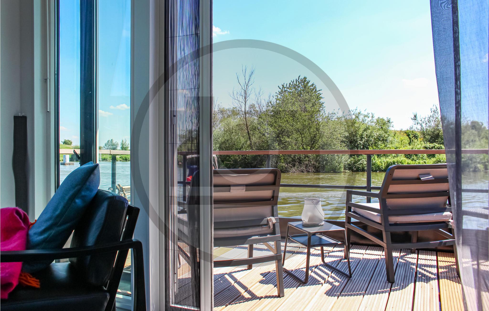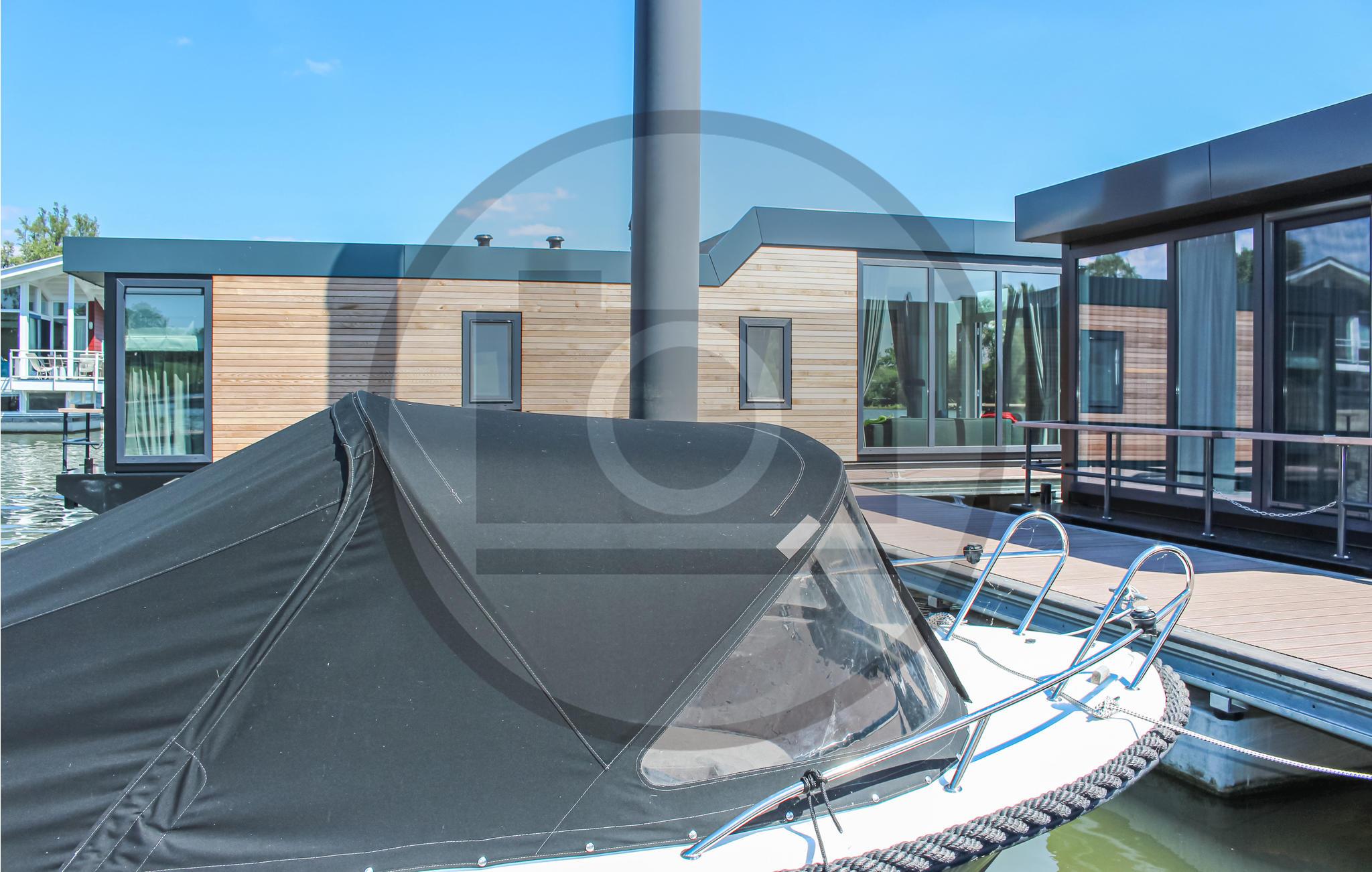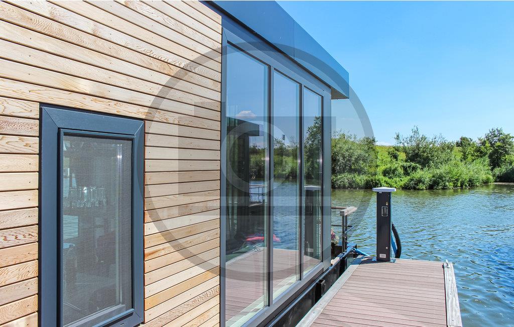Det flydende hus har sin egen anløbsbro, hvor du kan fortøje din mindre båd, kano eller SUP. Du kommer ind i huset gennem terrassen med en uhindret udsigt over vandet. Hvis du har brug for skygge, har ejeren et skygge sejl i huset. Via terrassen kommer du ind i stuen med åbent køkken. Fra siddepladsen og spisepladsen har du en smuk udsigt over det omgivende vand. For en husbåd er køkkenet veludstyret. For eksempel er der en lille opvaskemaskine og en ovn. Begge soveværelser har en dobbeltseng (200x180cm og 200x150cm).