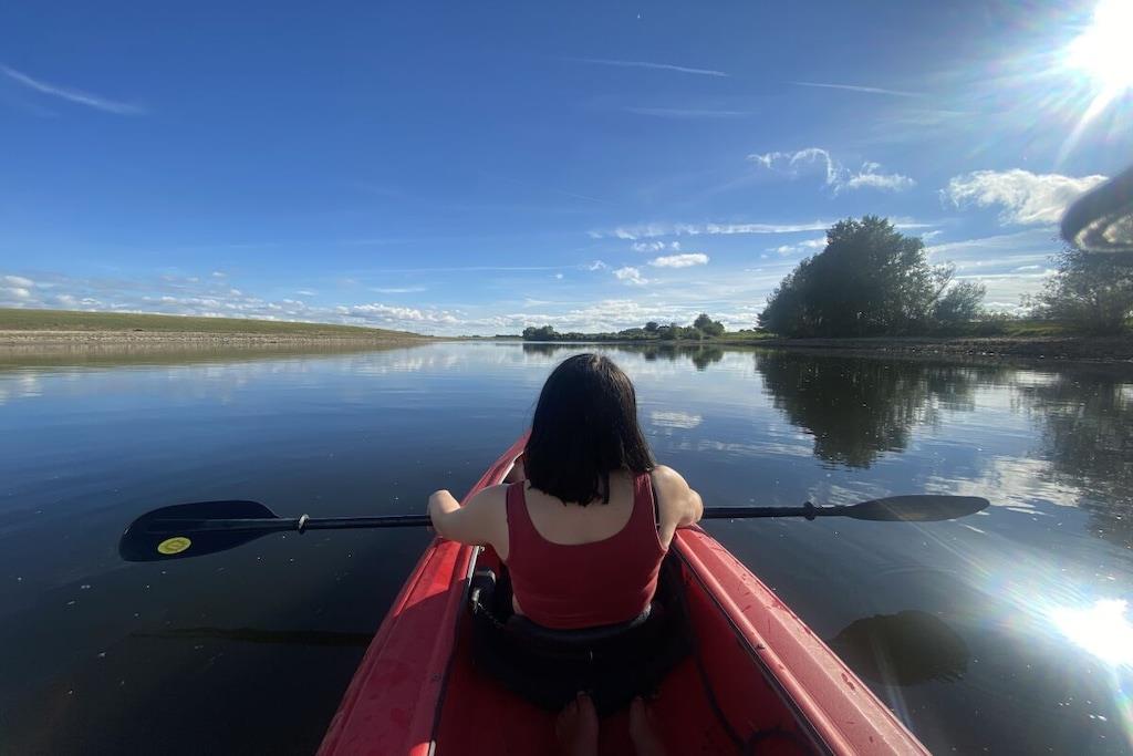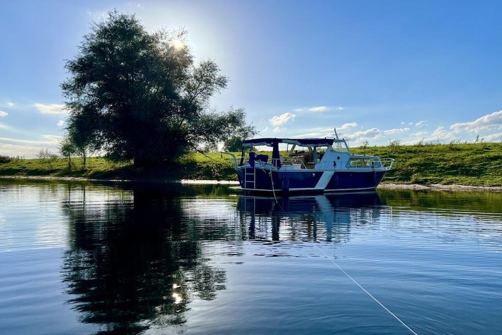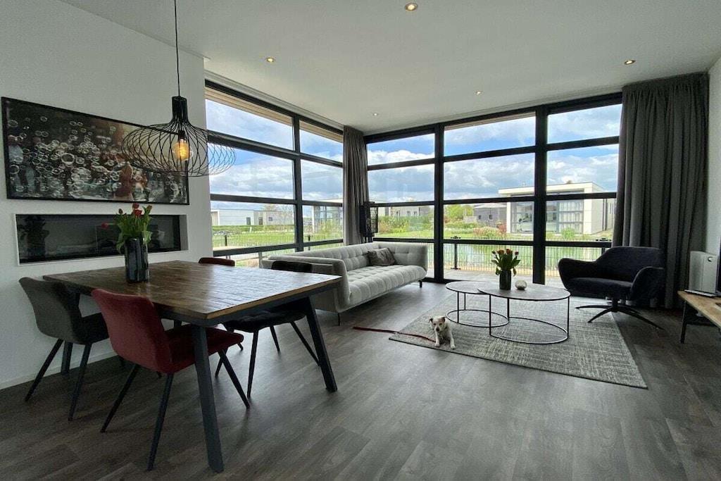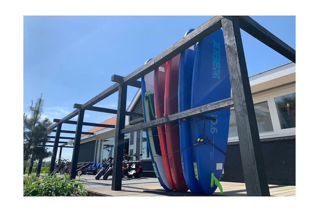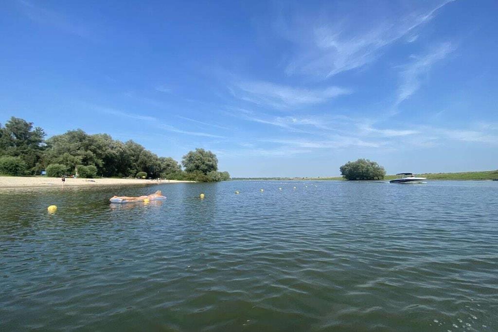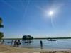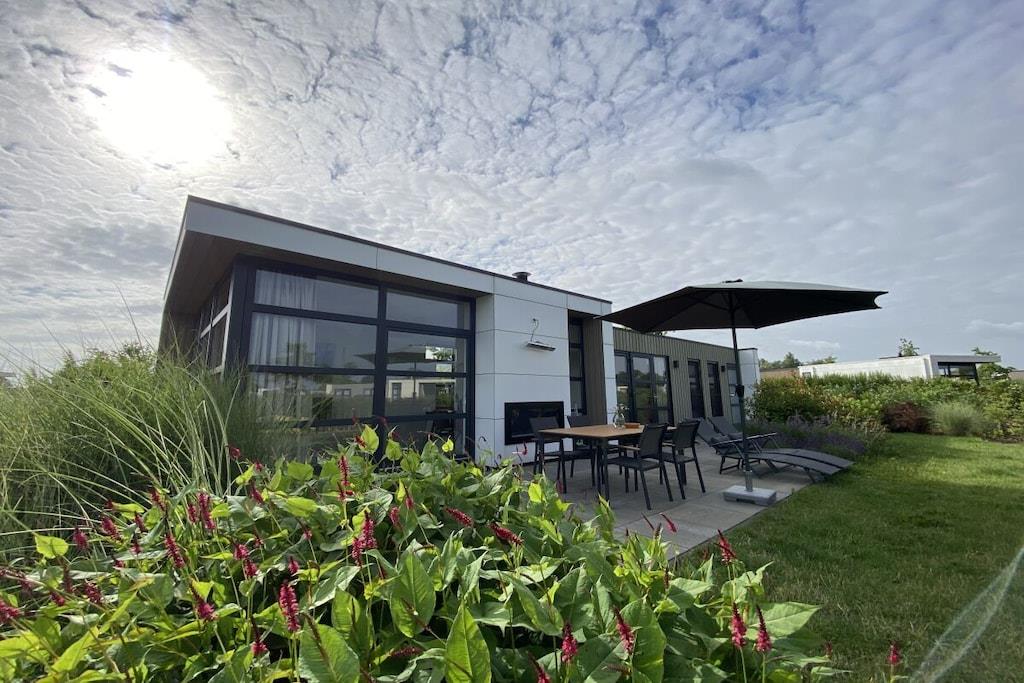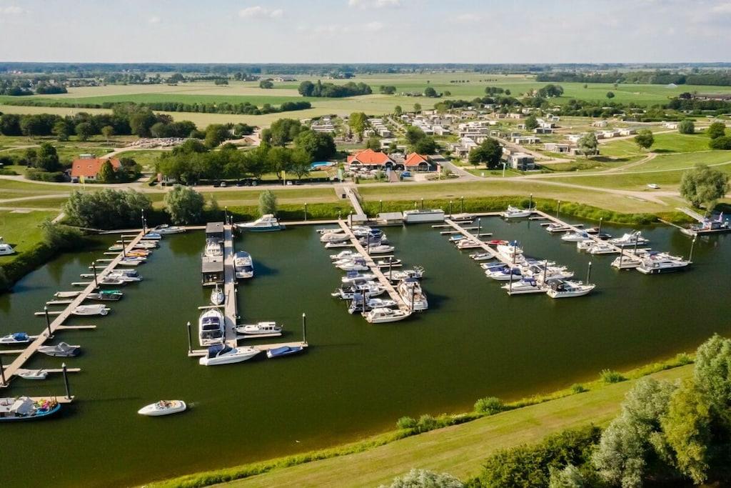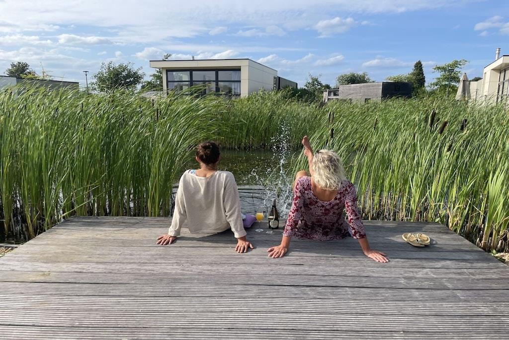 Vores moderne og lyse chalet til 4 personer ligger på en smuk grund omgivet af en menneskeskabt vandvej. Grunden er fuldt indhegnet, hvilket gør den perfekt til en afslappende ferie med små børn eller hunde. Den rummelige terrasse er udstyret med havemøbler og liggestole. Den storslåede udsigt over vandet og sivene inviterer dig til at nyde lange sommeraftener på din egen grund. En privat badebro til solbadning og afslapning er tilgængelig via en port fra haven. Den rummelige opholds- og spisestue med TV og aircondition har et køkken af høj kvalitet med opvaskemaskine. Der er to soveværelser med dobbeltsenge og garderobeskabe. Det større soveværelse med TV tilbyder en smuk udsigt over vandet fra sengen. Begge soveværelser har myggenet i vinduerne. En vaskemaskine og tørretumbler kan benyttes mod et gebyr i lobbyen.