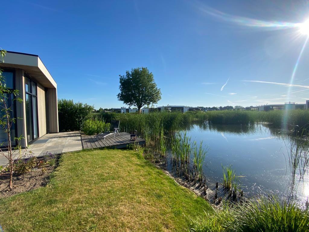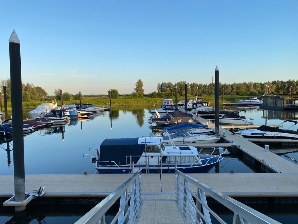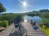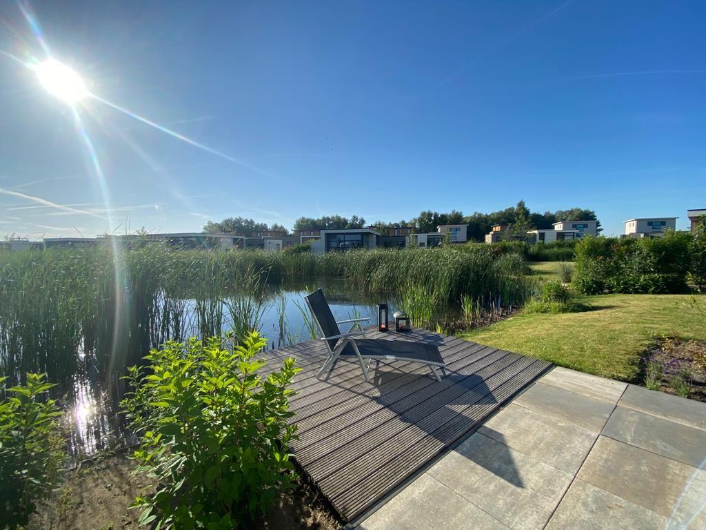 Freistehendes Marina Strandbad Chalet Haus am Steg Haus Nr. 57 (60 m², Bj. 2019) in Ferienanlage direkt am See mit außergewöhnlich gutem Seeblick, Steg und Bootliegeplatz. Für bis zu 4 Gäste: 2 Schlafzimmer, 1 Bad mit bodengleicher Dusche, zusätzlich 2 Gäste-WCs. Offene Küche zum Wohnzimmer, Garten. WLAN ab 100 Mbit/s, Klima, Kamin, E-Ladestation, Privatparkplatz. Haustiere (max. 2) und Kinder willkommen; Pool, Sauna, Fitnessraum.