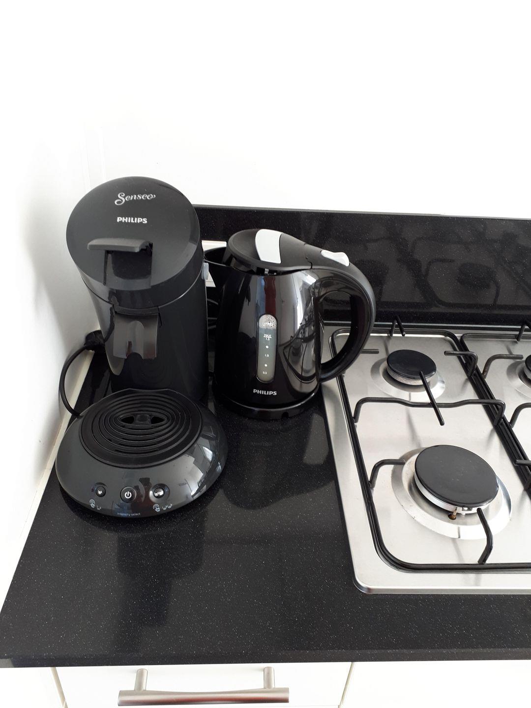 Die Küche ist offen zum Wohnzimmer und vollständig eingerichtet, sodass Sie sich flexibel selbst versorgen können. Zur Verfügung stehen Gasherd und Backofen, Mikrowelle, Kühlschrank mit Gefrierfach, Spülmaschine, Wasserkocher, Kaffeemaschine sowie eine Senseo-Espressomaschine. Küchenutensilien, Geschirr und Besteck sind vorhanden.