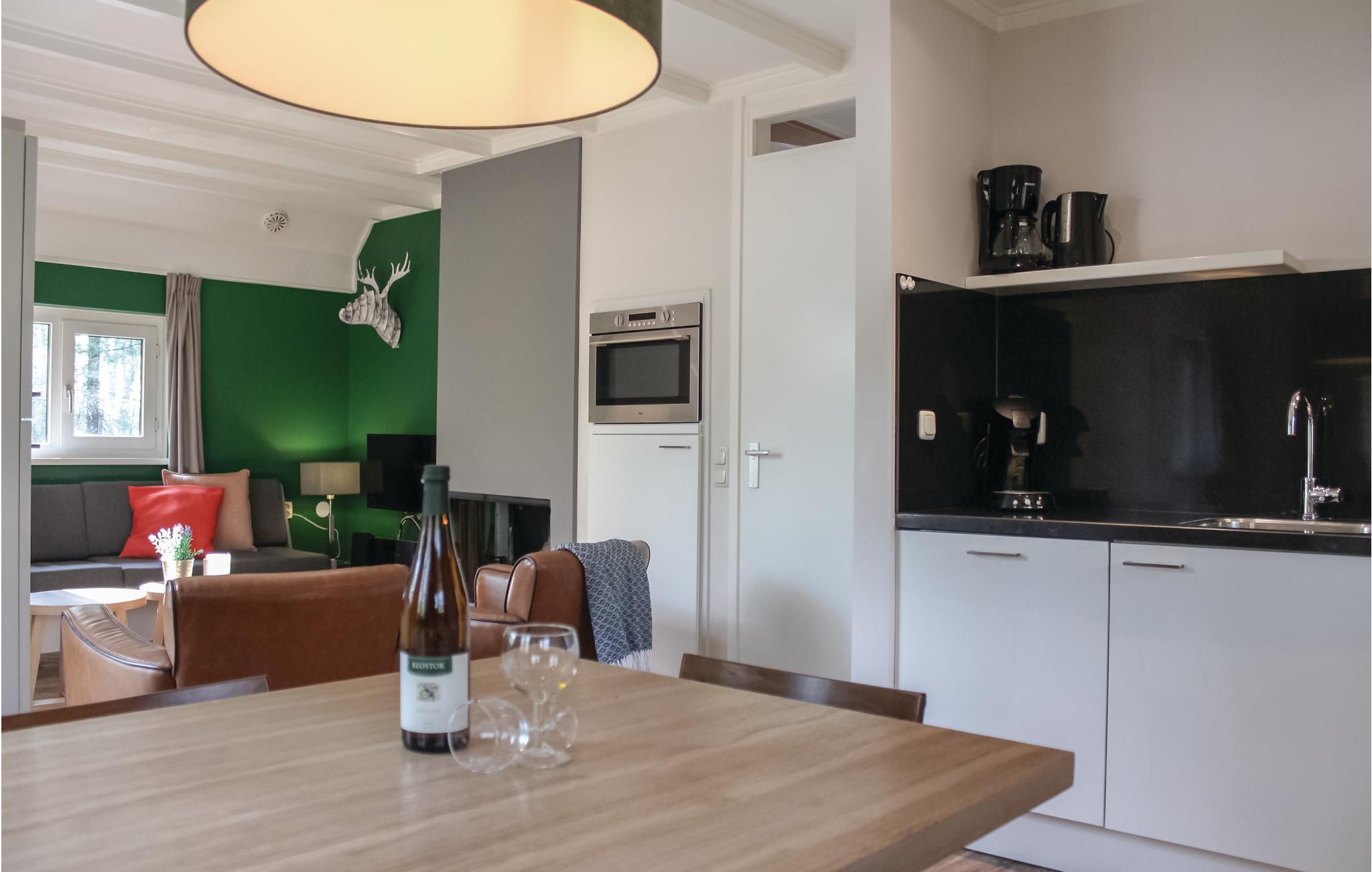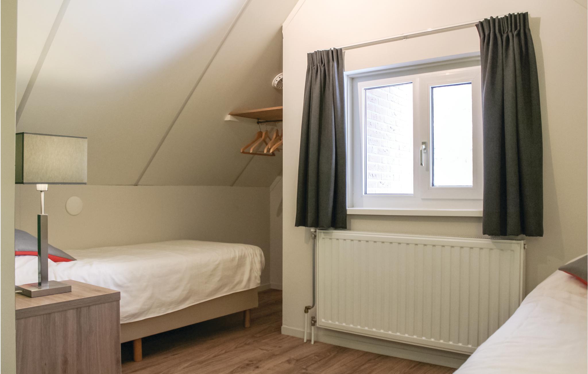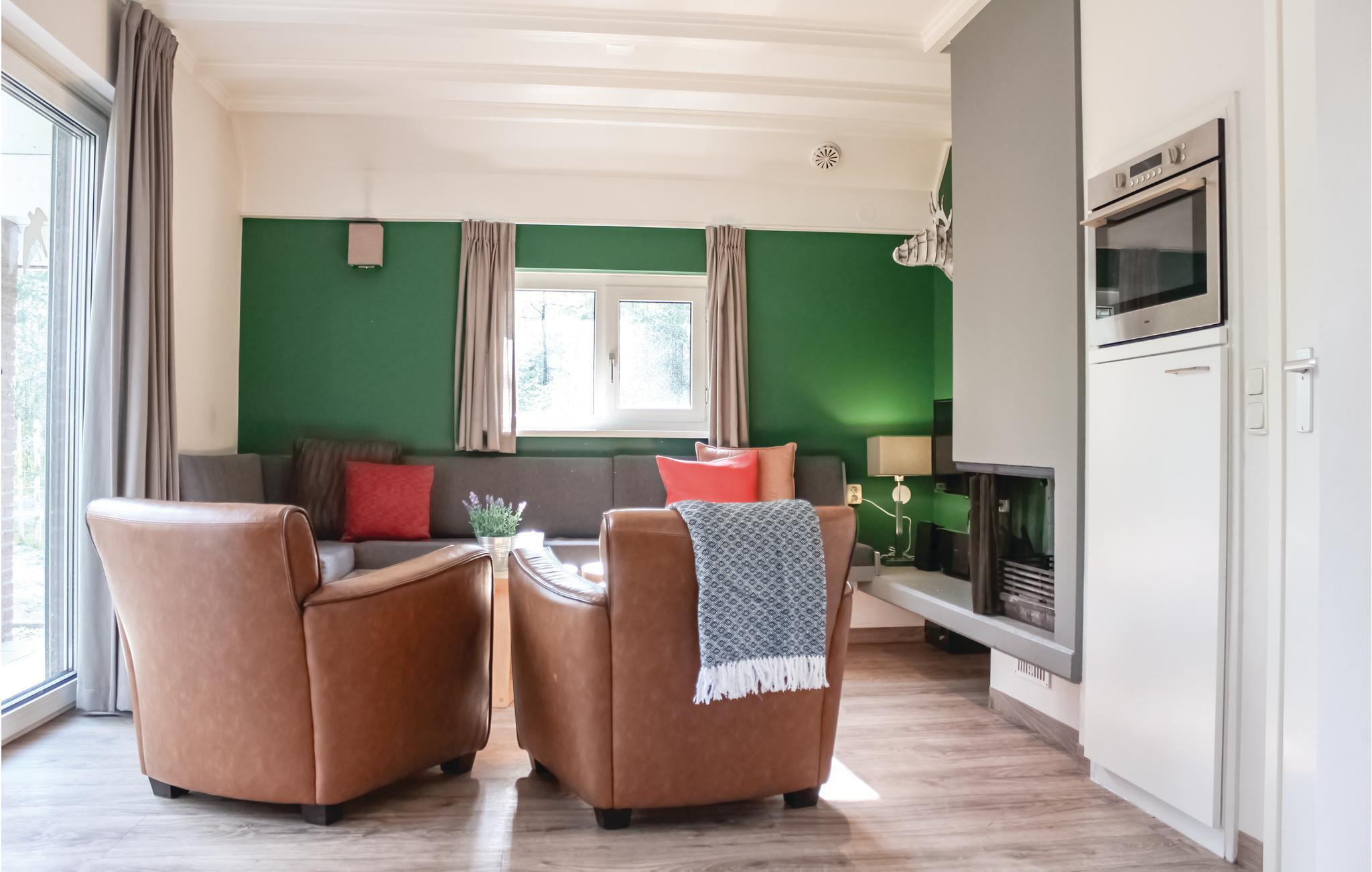 Du kan tilbringe en behagelig ferie i dette komfortabelt indrettede feriehus i feriehusbyen Bospark Landgoed Junne. Den indbydende have har et picnicbord og en møbleret terrasse. En del af haven er helt indhegnet, så din hund kan slippe dampen ud udenfor. . Du kan slappe af indenfor i en attraktiv stue med hyggelig pejs, spiseplads og smart TV et badeværelse med badekar, bruseniche og håndvask. Trappen i gangen fører dig til det andet soveværelse, hvorfra du når det tredje soveværelse.