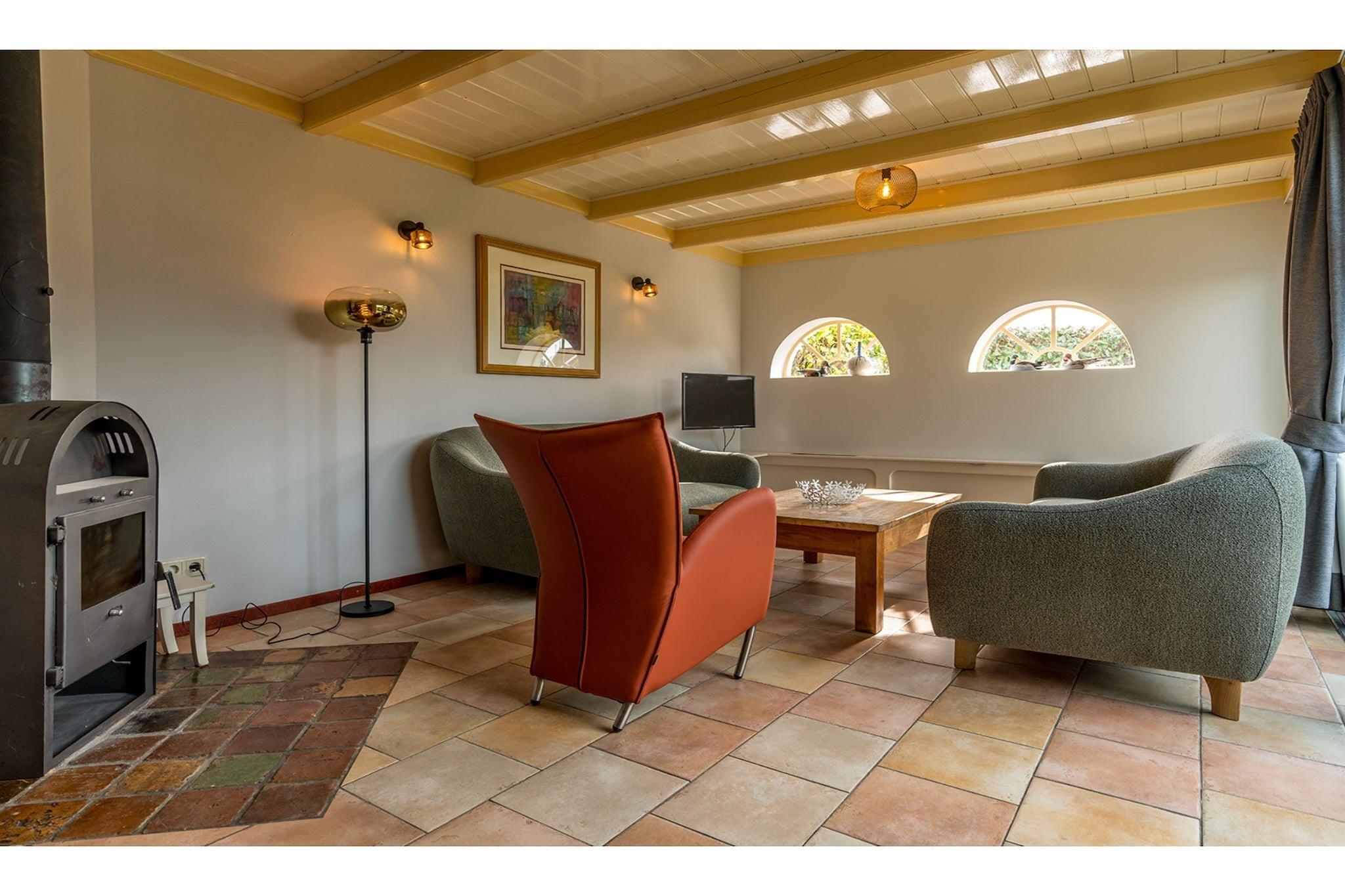 Stueetage: (entre, åbent køkken(komfur(induktion), kaffemaskine(kaffetragt), combi-mikroovn, opvaskemaskine , køle-fryseskab), stue / spisestue(Fjernsyn(kabel, Hollandske TV-kanaler, Tyske TV-kanaler), spisebord(6 personer), pejs, sofahjørne(6 personer)), soveværelse(2x enkeltseng), badeværelse(bruser, håndvask), toilet) På 1. etage: (soveværelse(2x enkeltseng), soveværelse(2x enkeltseng), toilet) tørretumbler(deles med andre gæster), vaskemaskine(deles med andre gæster), terrasse(privat, 20 m2), have(deles med andre gæster, 300 m2), havemøbler, parkering, barneseng, barnestol, trappegitter, Ladestation til el-biler