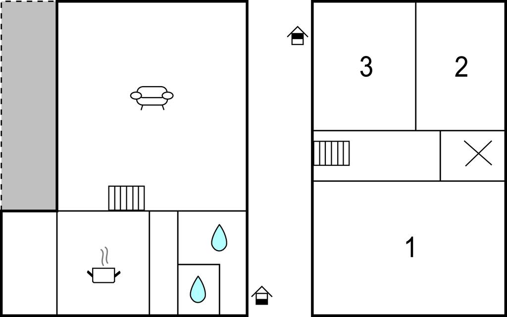 Soveværelse (nr. 1) - 2 Sovepladser. (Enkeltseng(e)).
