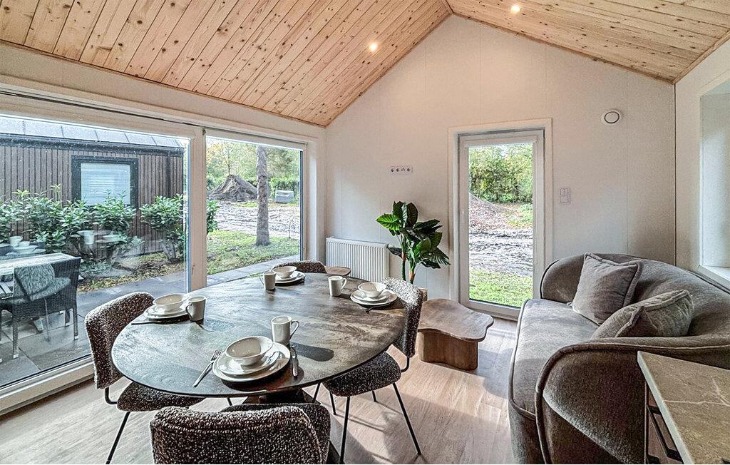 Dette moderne og indbydende hus byder sine gæster velkommen i fredfyldte, naturskønne omgivelser. Herfra kan I nyde smukke gåture og cykelture på landet. Find jer til rette med familien i de stilfulde værelser. Efter en begivenhedsrig dag kan I streame en god film på sofaen og nyde den smukke udsigt gennem gulv til loft-vinduerne.